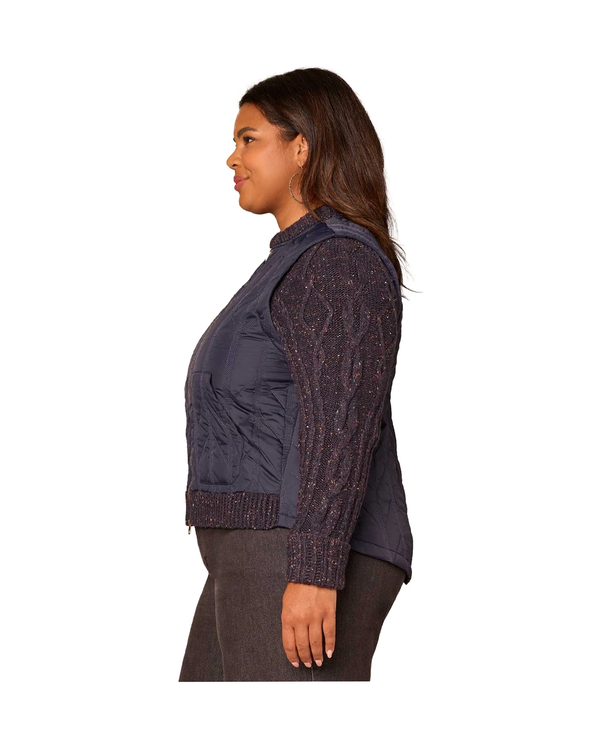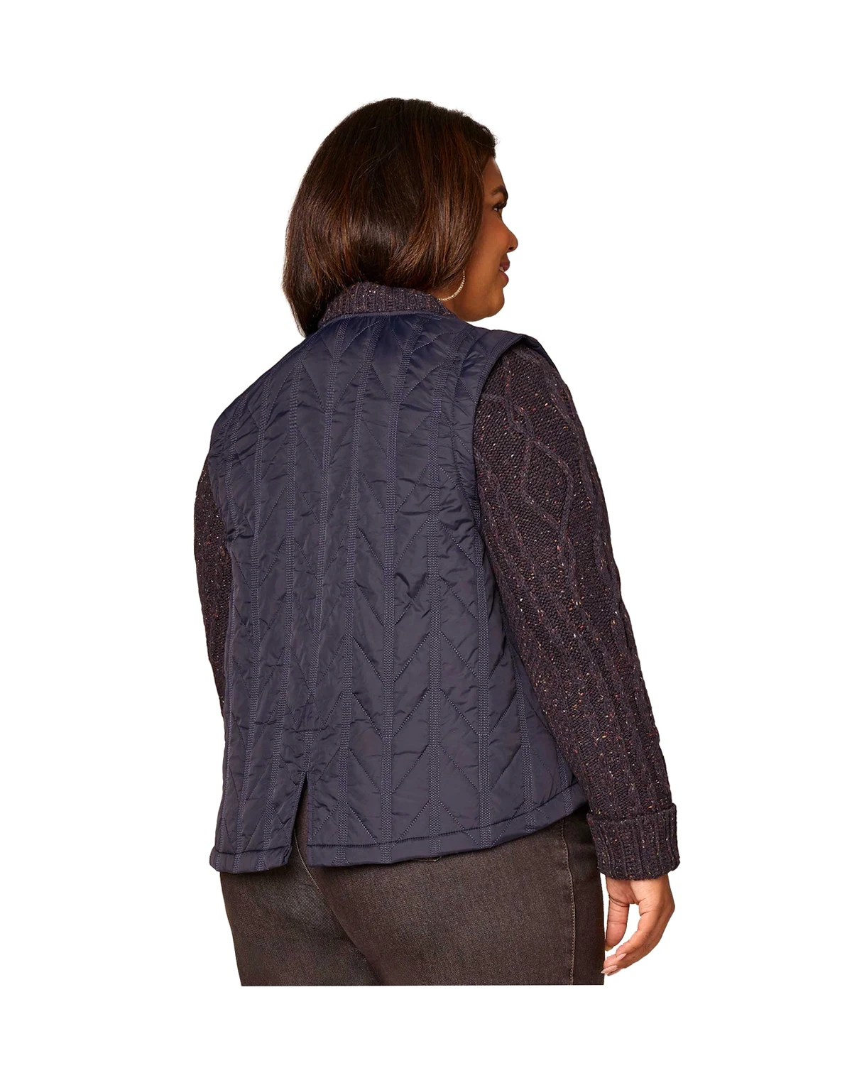Plus Size Stand Collar Quilted Vest Zip Jacket
