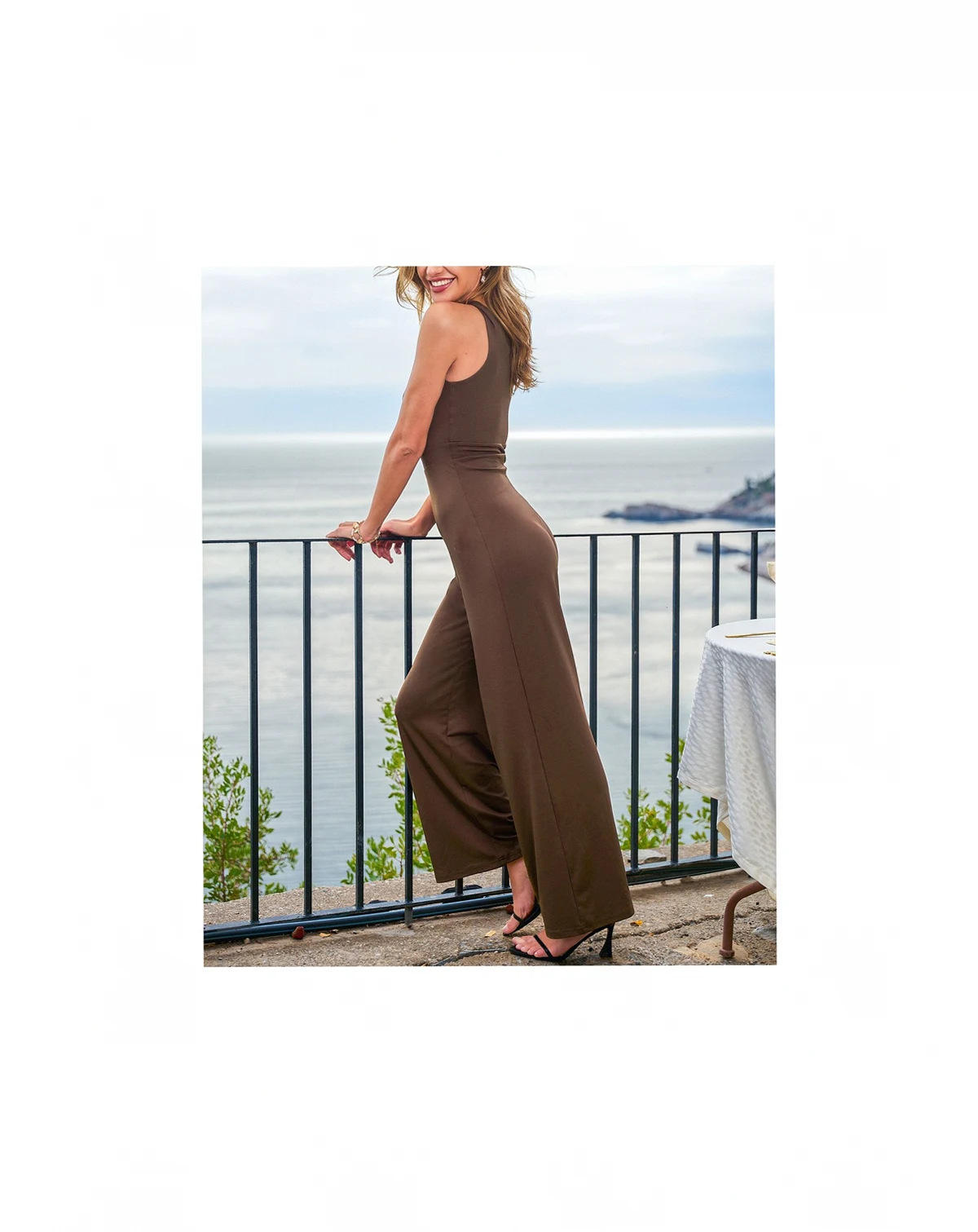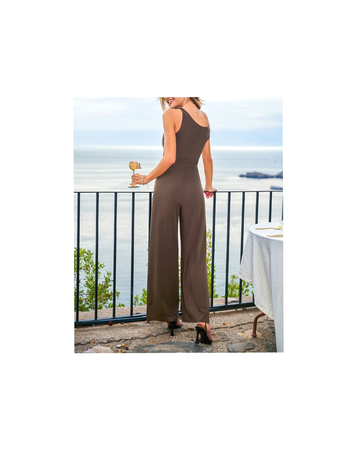The Sharp Turn Brown Jumpsuit brings an easy edge to everyday plans! An asymmetrical neckline, sleeveless cut, and straight-leg fit keep it cool, modern, and ready for wherever the day goes. Product code: CAA13E5M010AA