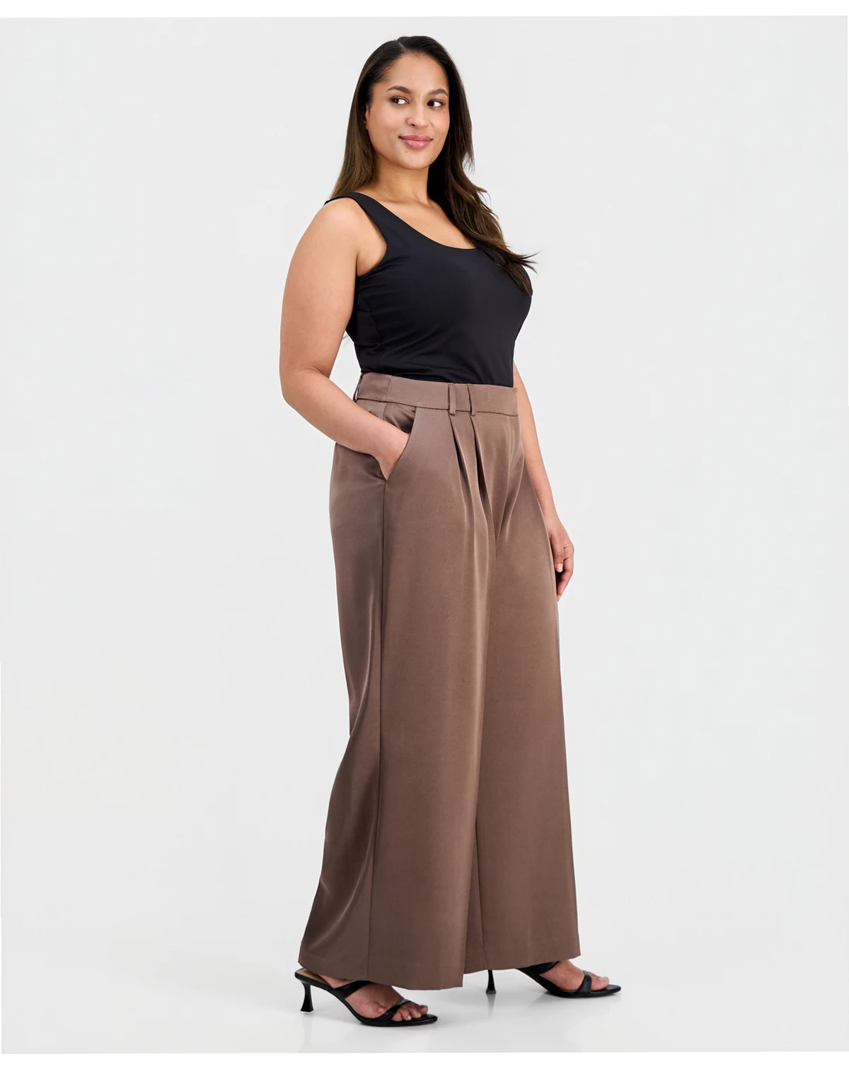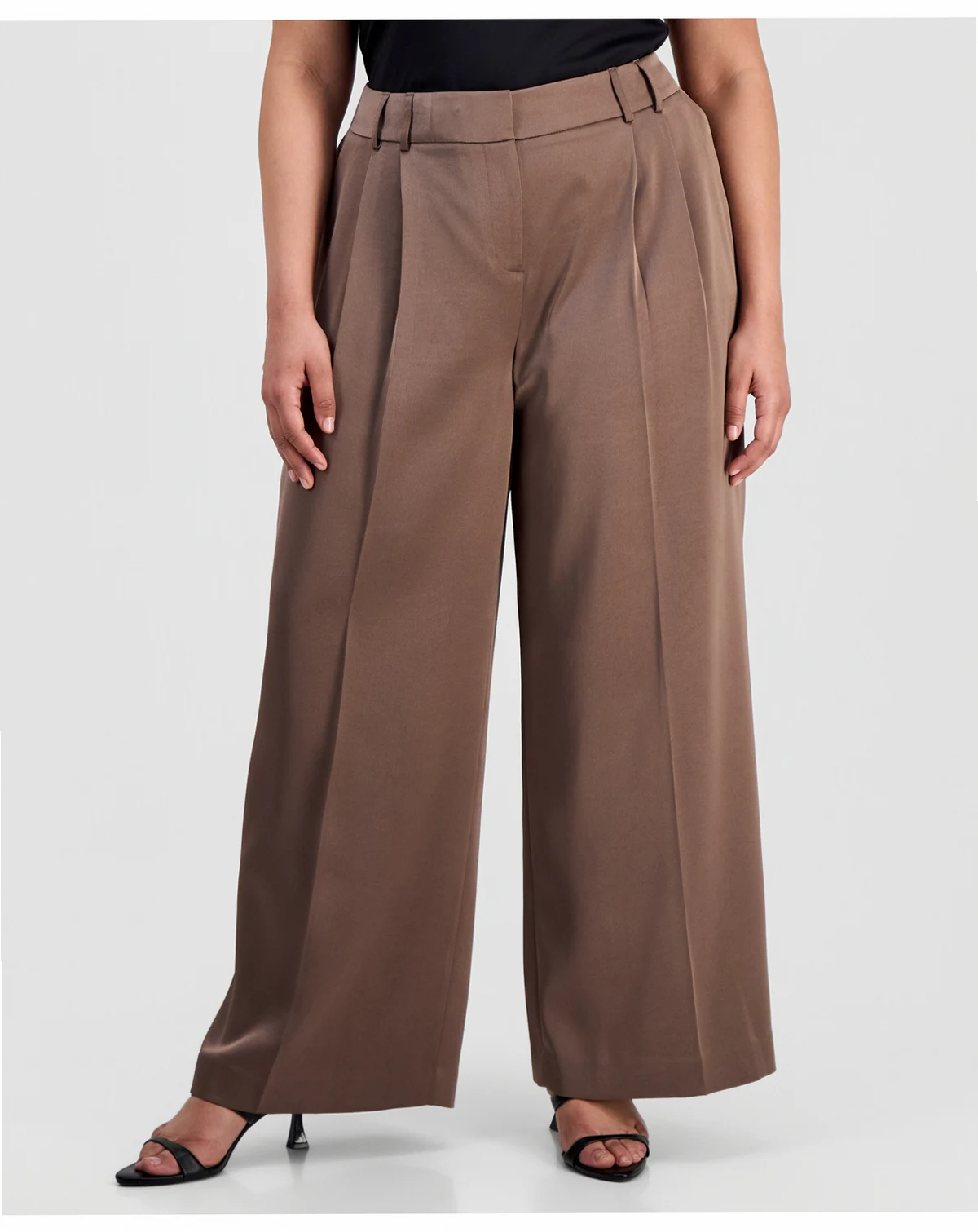 Plus Size Pleat-Front Wide-Leg Satin Pants