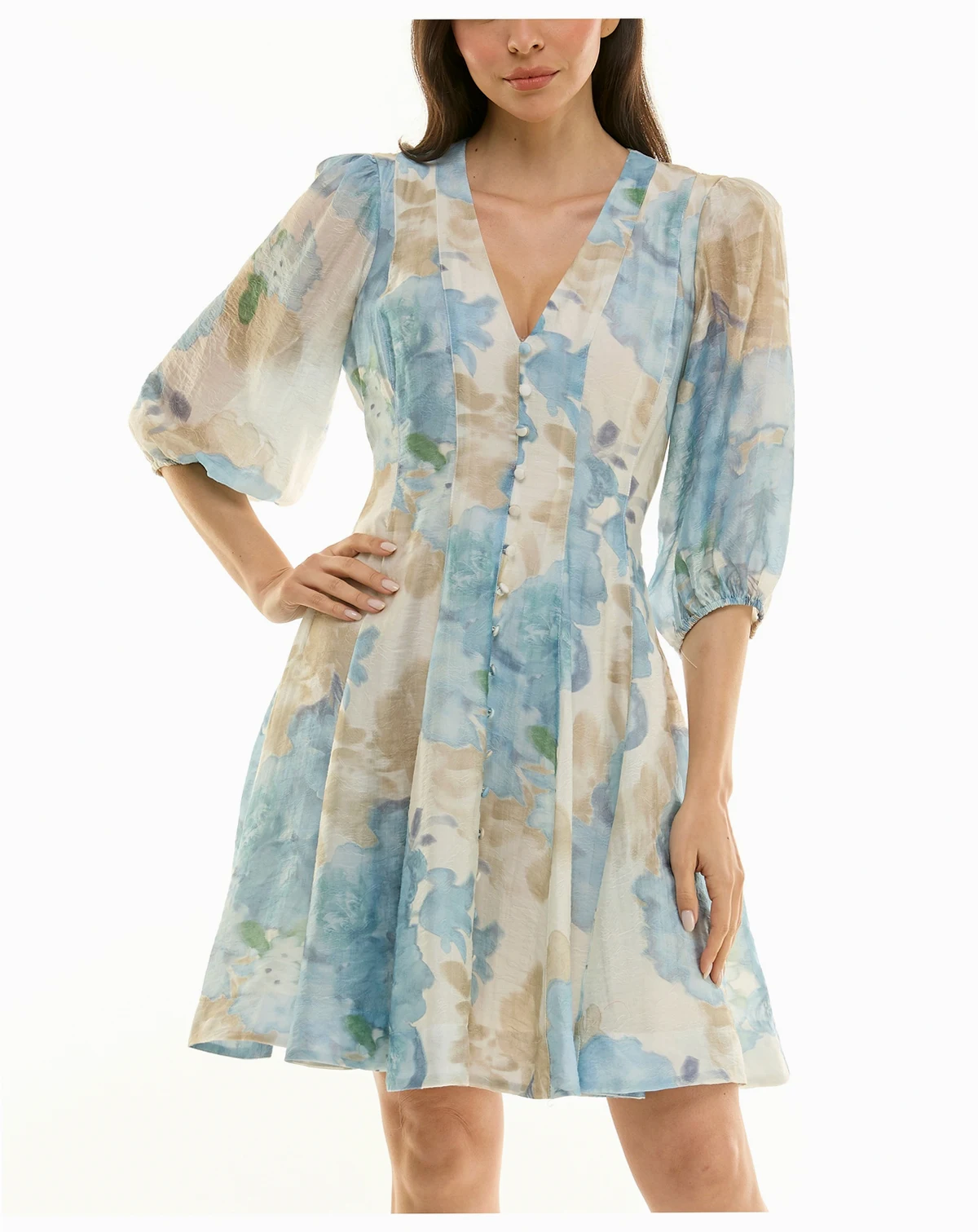 Add a touch of charm to your wardrobe with this short dress by Taylor, featuring a classic button-front design. Its A-line silhouette offers a flattering and casual look.