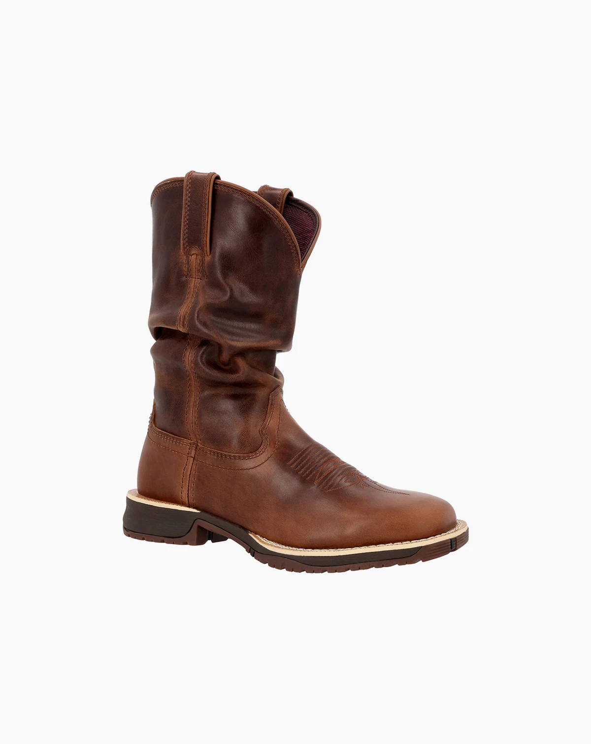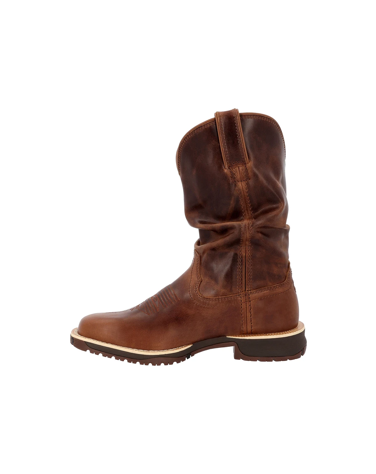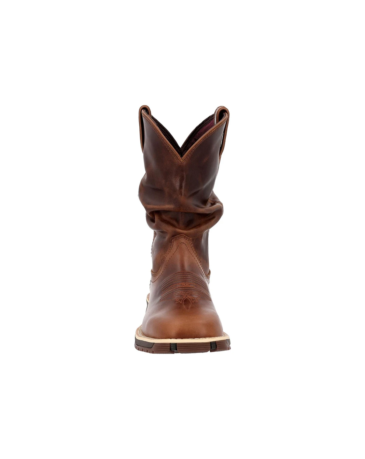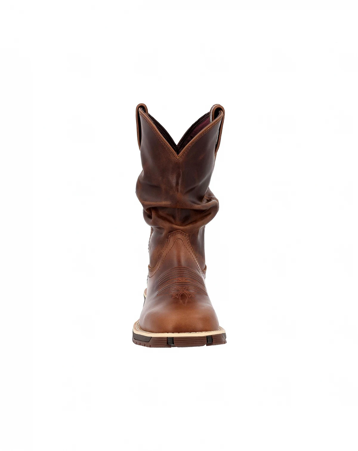 Introducing our first women's exclusive western collection, the Rocky Rosemary Women's Western Boot is designed to offer all-day comfort, safety, and stability. With a mix of fashion and functionality, this 11-inch brown full grain leather boot is packed with features built to withstand the job. A light and flexible construction, fiberglass shank, oil- and slip-resisting rubber outsole with EVA midsole, and an EnergyBed footbed all work together to keep you on your feet for longer. Add in an expansion fit seam for easy on and off after those long workdays. This non-metallic square toe pull-on boot meets ASTM F2892 electrical hazard standard for soft toe work footwear..