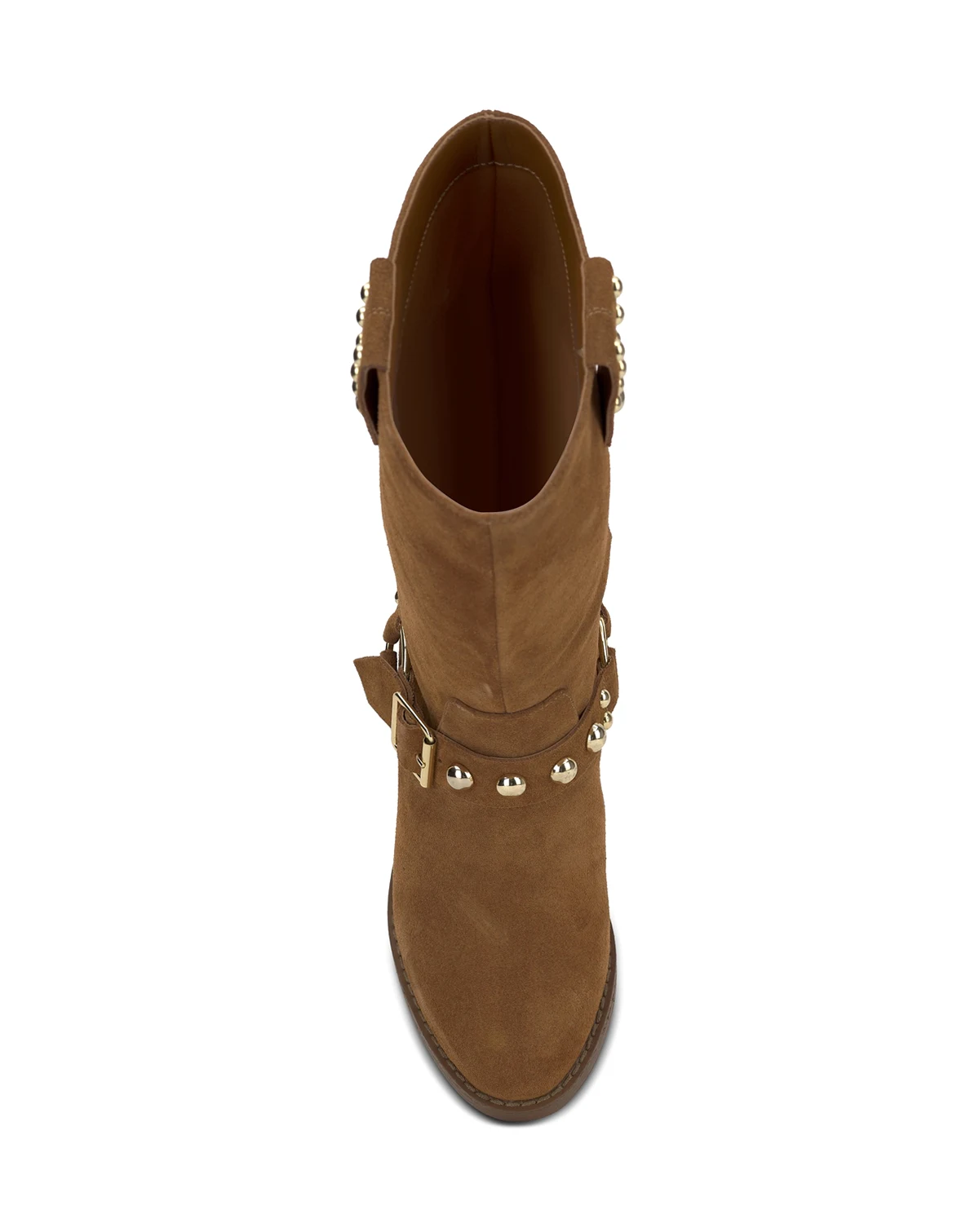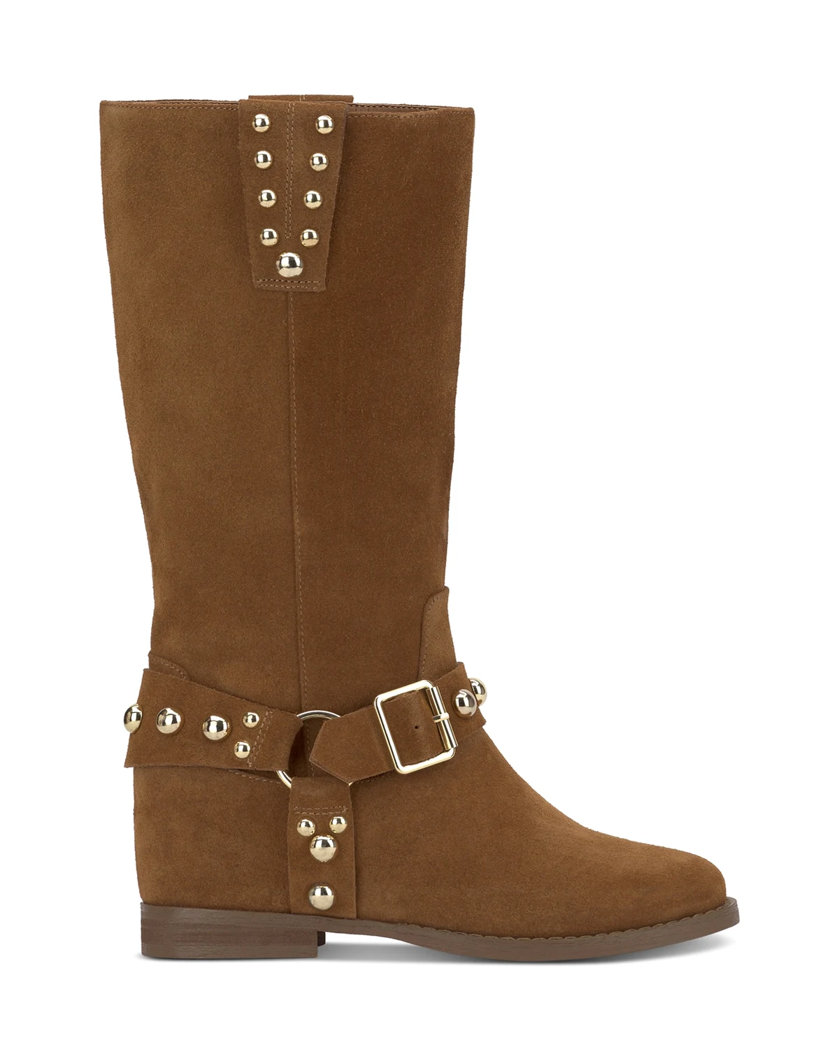 Studded harness straps and buckles add moto flash to a western-inspired look in the fresh Milley boots from Jessica Simpson.