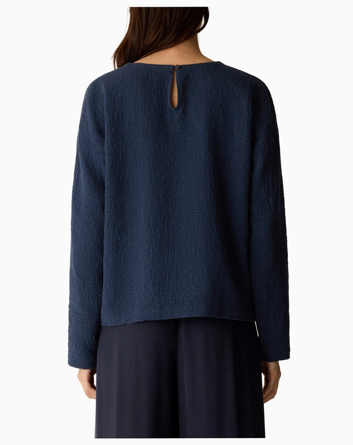 Embrace effortless movement in this Eileen Fisher top, cut in a generous, boxy fit that drapes cleanly away from the body. A crewneck and keyhole back closure add relaxed texture and ease.