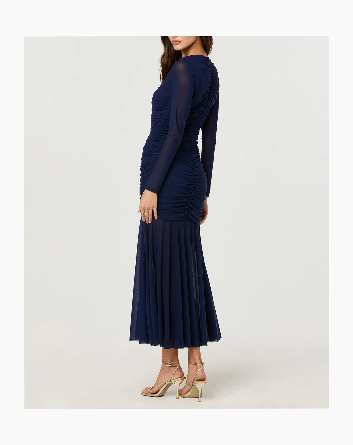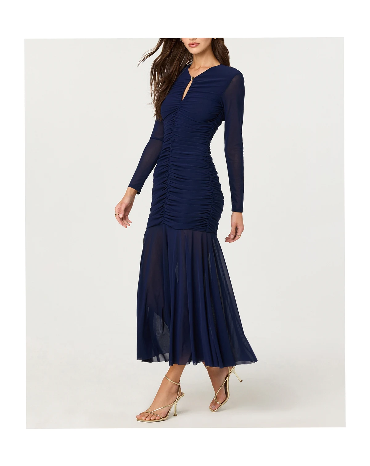 Combining a classic crewneck with long sleeves, this ASTR the Label dress presents a fitted silhouette with a sophisticated button detail at the front neck. The elegant design creates a polished and refined look.