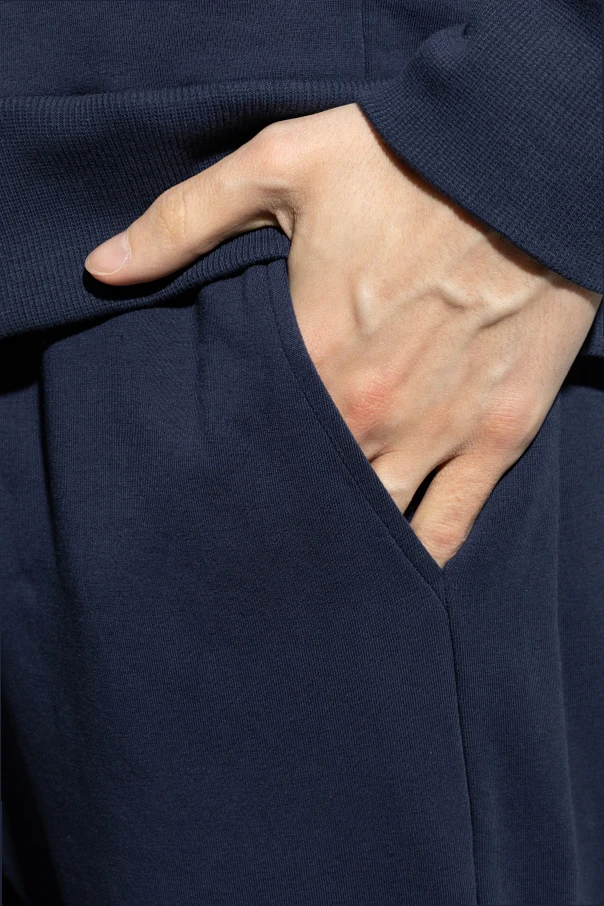The design features a classic cut with slightly tapered legs, culminating in cuffed hems that infuse a sporty flair. An elastic waistband with adjustable drawstrings ensures a personalized fit, complemented by convenient side pockets for a touch of practicality.