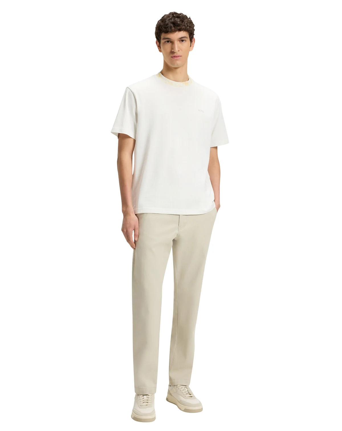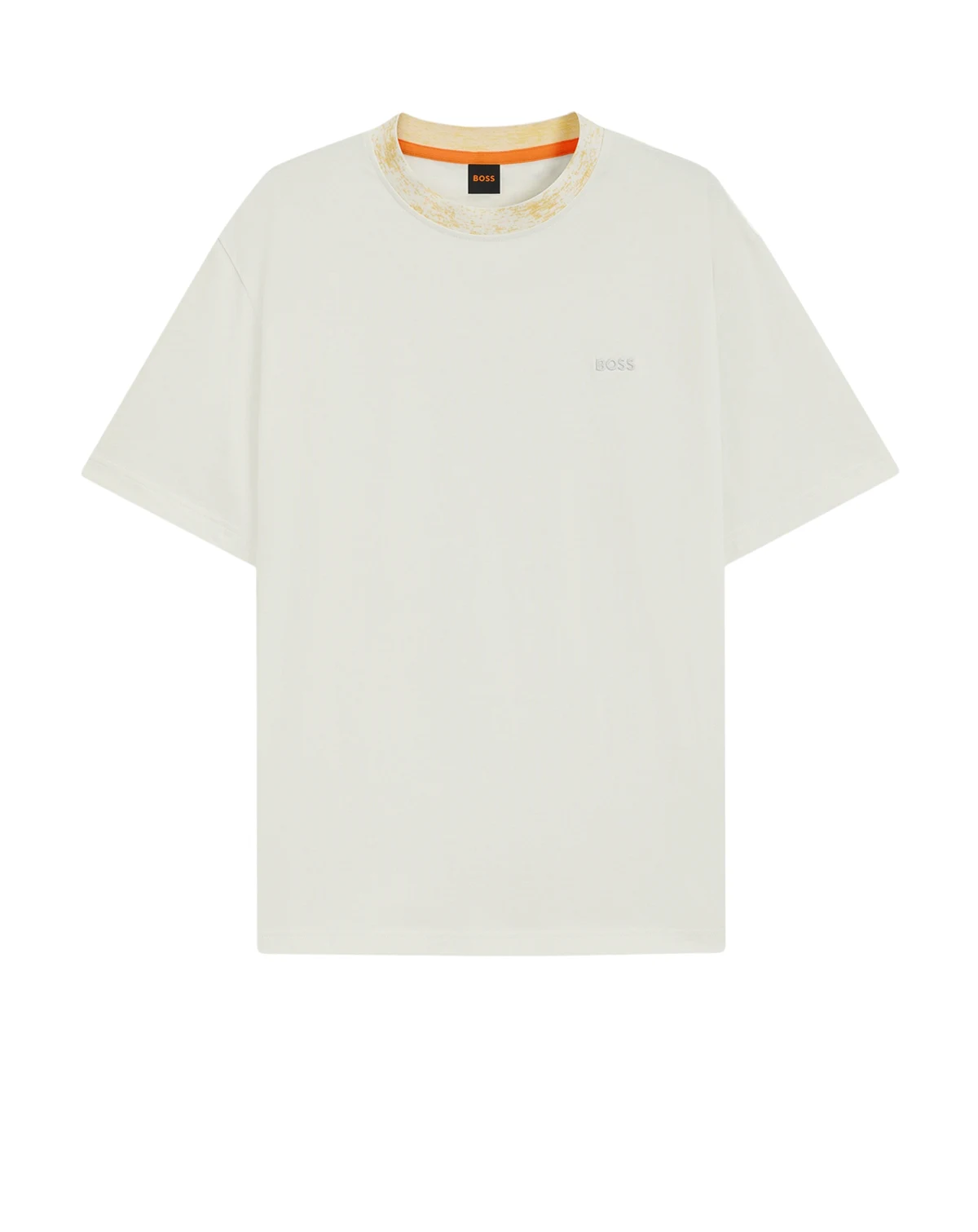 Add subtle detail to casual looks with this BOSS Men's wear T-shirt, topped with a creatively patterned collar. Relaxed fit in weighty cotton jersey.