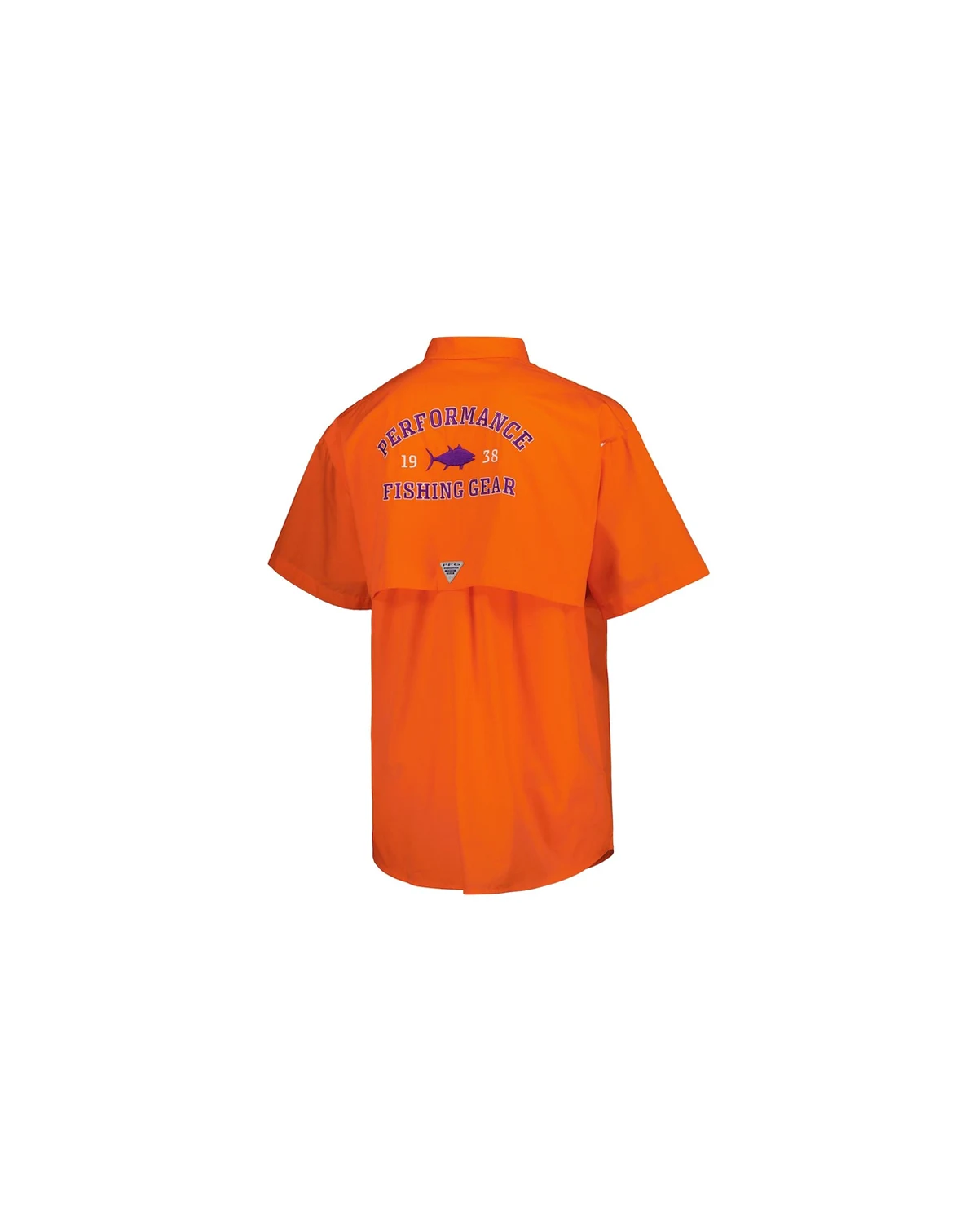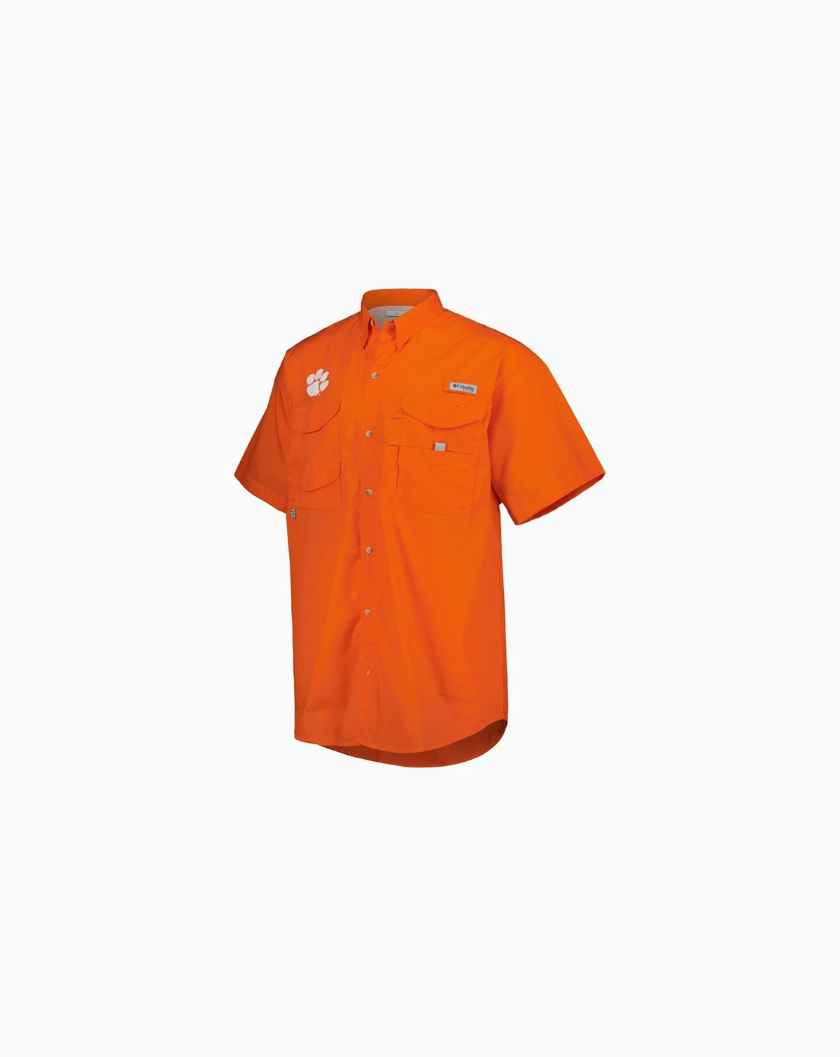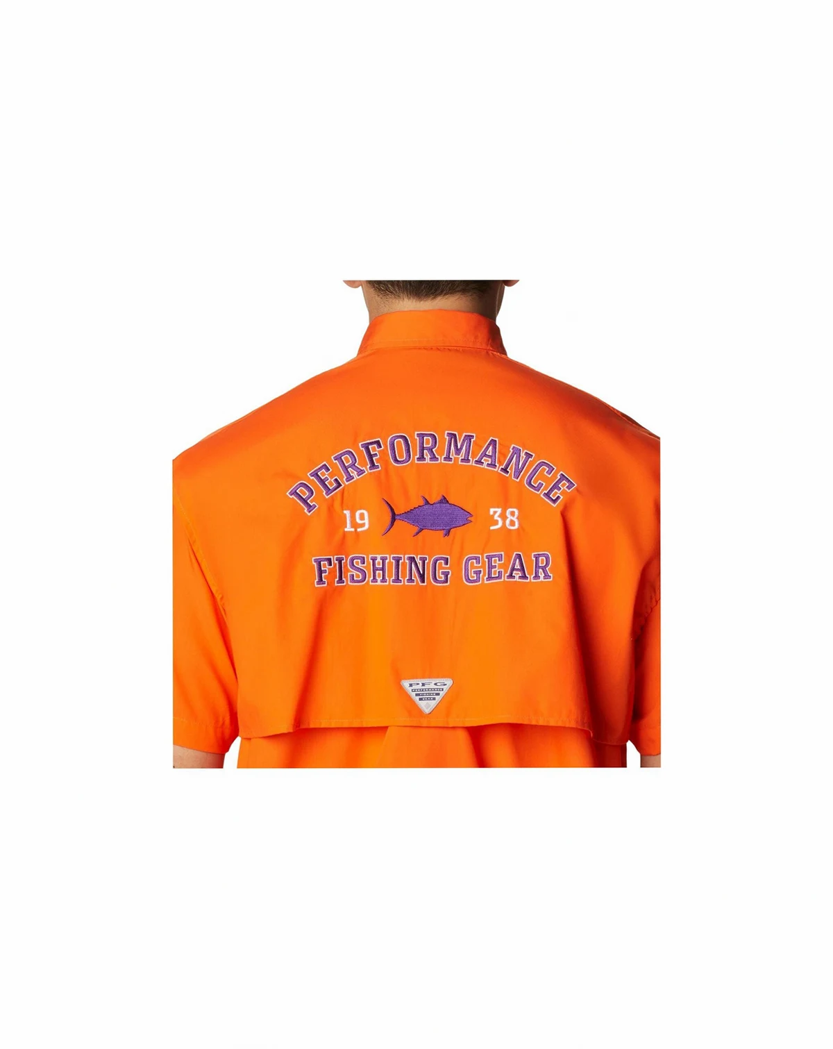 On your next adventure, bring along your Clemson Tigers spirit with this Bonehead button-up shirt from Columbia. Designed to give active anglers functionality and comfort, it features multiple fly box pockets, a handy rod holder and built-in venting. The relaxed fit, sleek Clemson Tigers graphics and soft cotton fabric also provides a comfortable feel.