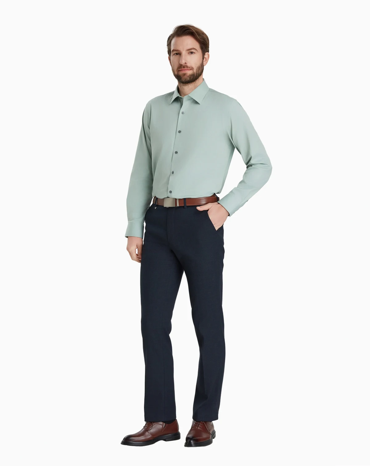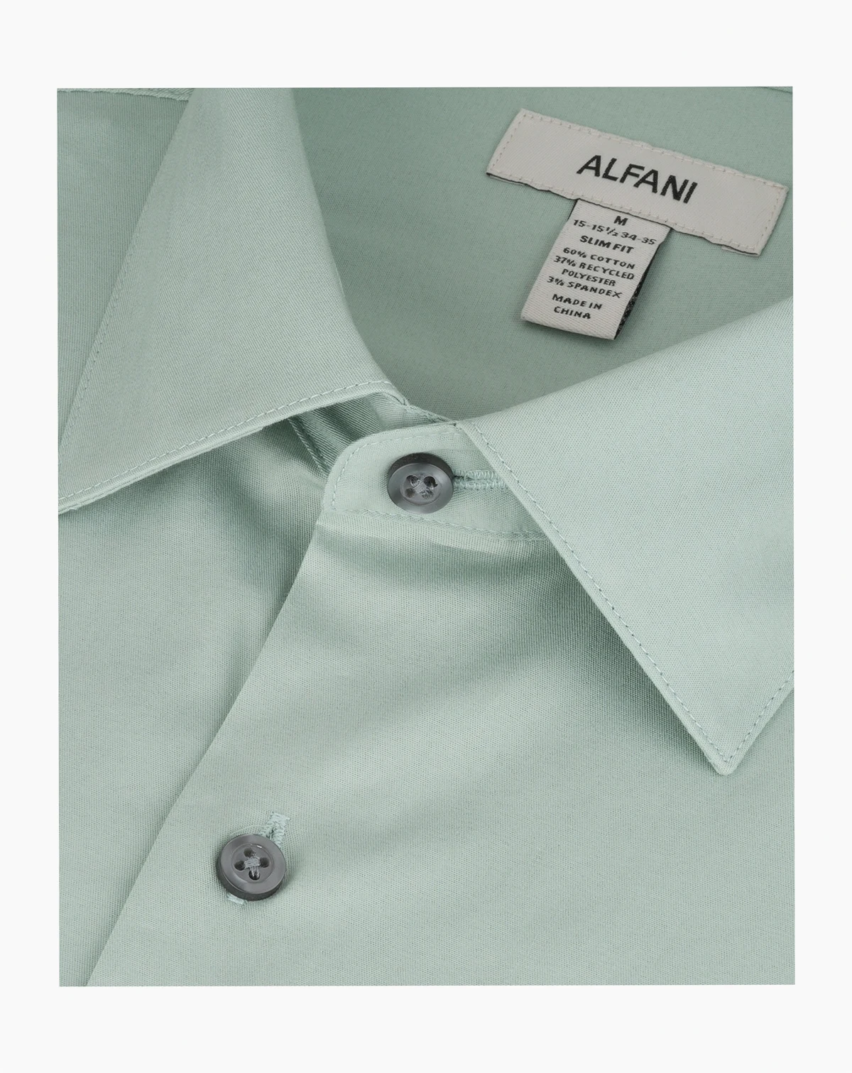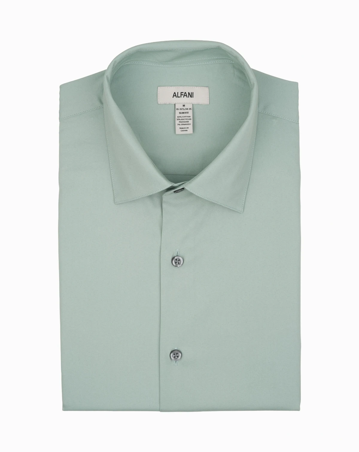 Sporting a spread collar and a slim-fit, this Alfani long-sleeve shirt presents a clean profile that maintains structure throughout routine wear. Finished with mitered cuffs and a stretch fabric, the design supports ease of movement and convenient upkeep.