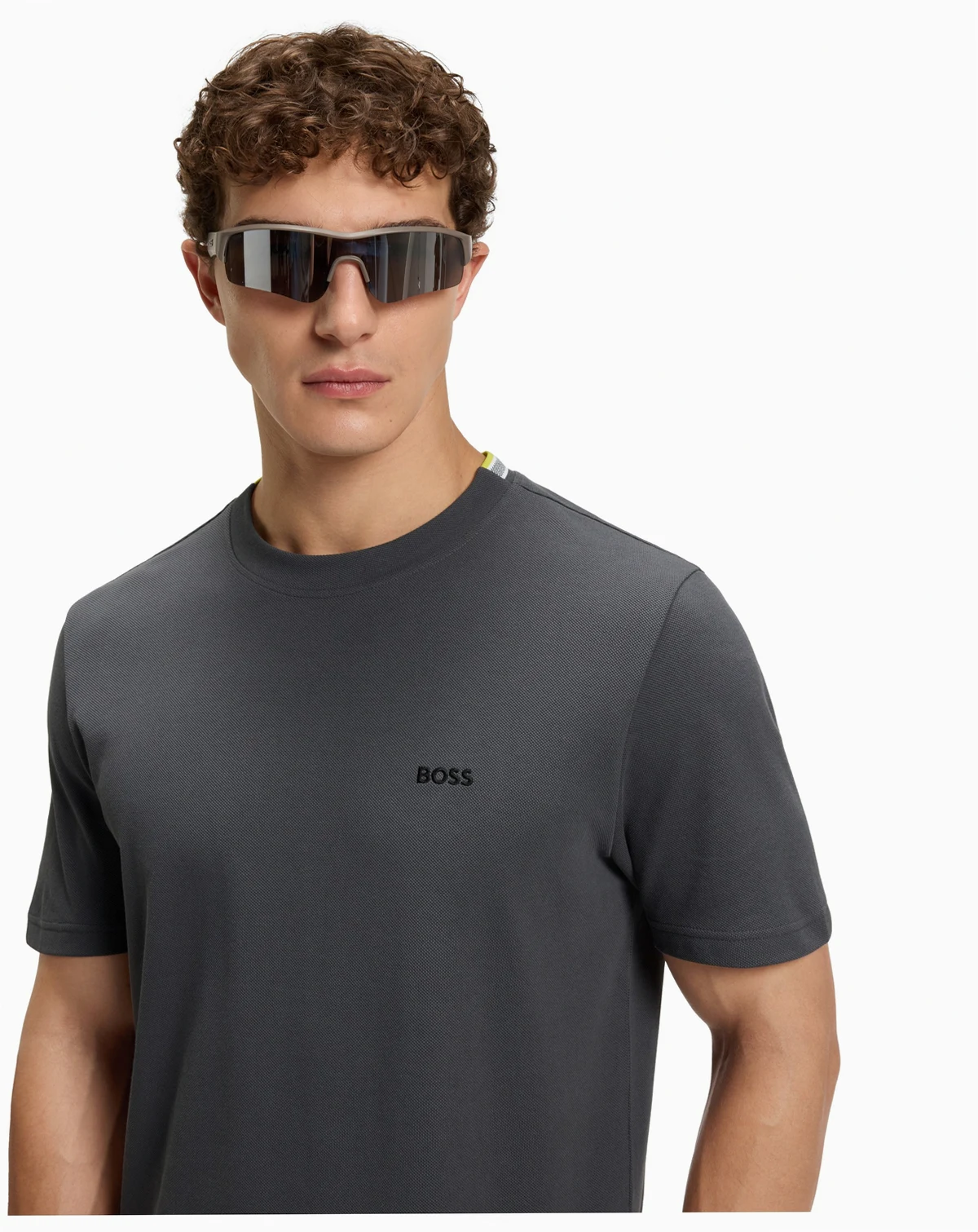 A distinctive T-shirt by BOSS Menswear. Featuring Oxford-jacquard detailing on the rear collar, this top is engineered in cotton pique. Embroidered chest logo.