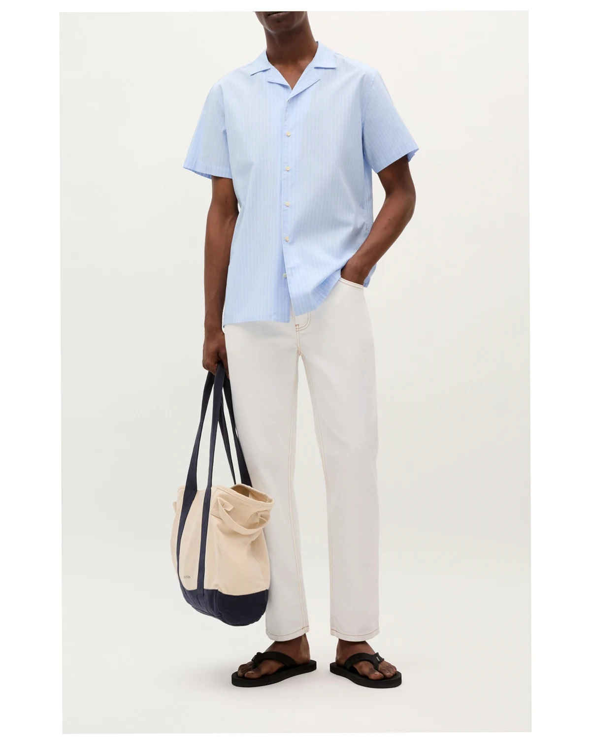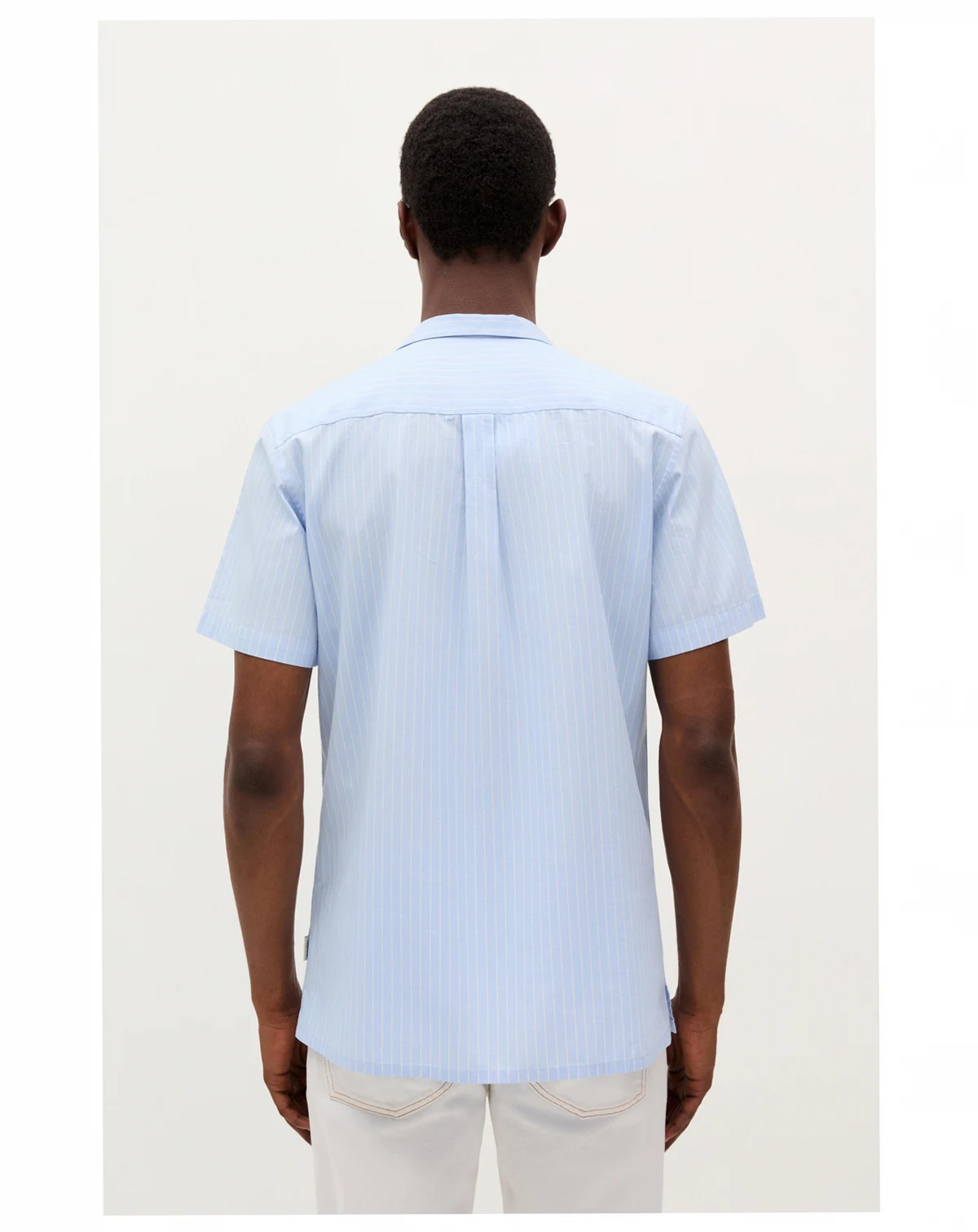Shirt made of 100% cotton|Regular fit|Button fastening. Short sleeves. Blue and white striped shirt.