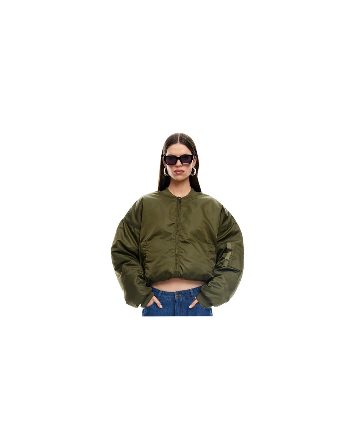 Layer with sleek style in this Lioness bomber jacket, featuring a band collar and a front zipper closure for a modern aesthetic. Its lined interior provides a smooth and comfortable feel.