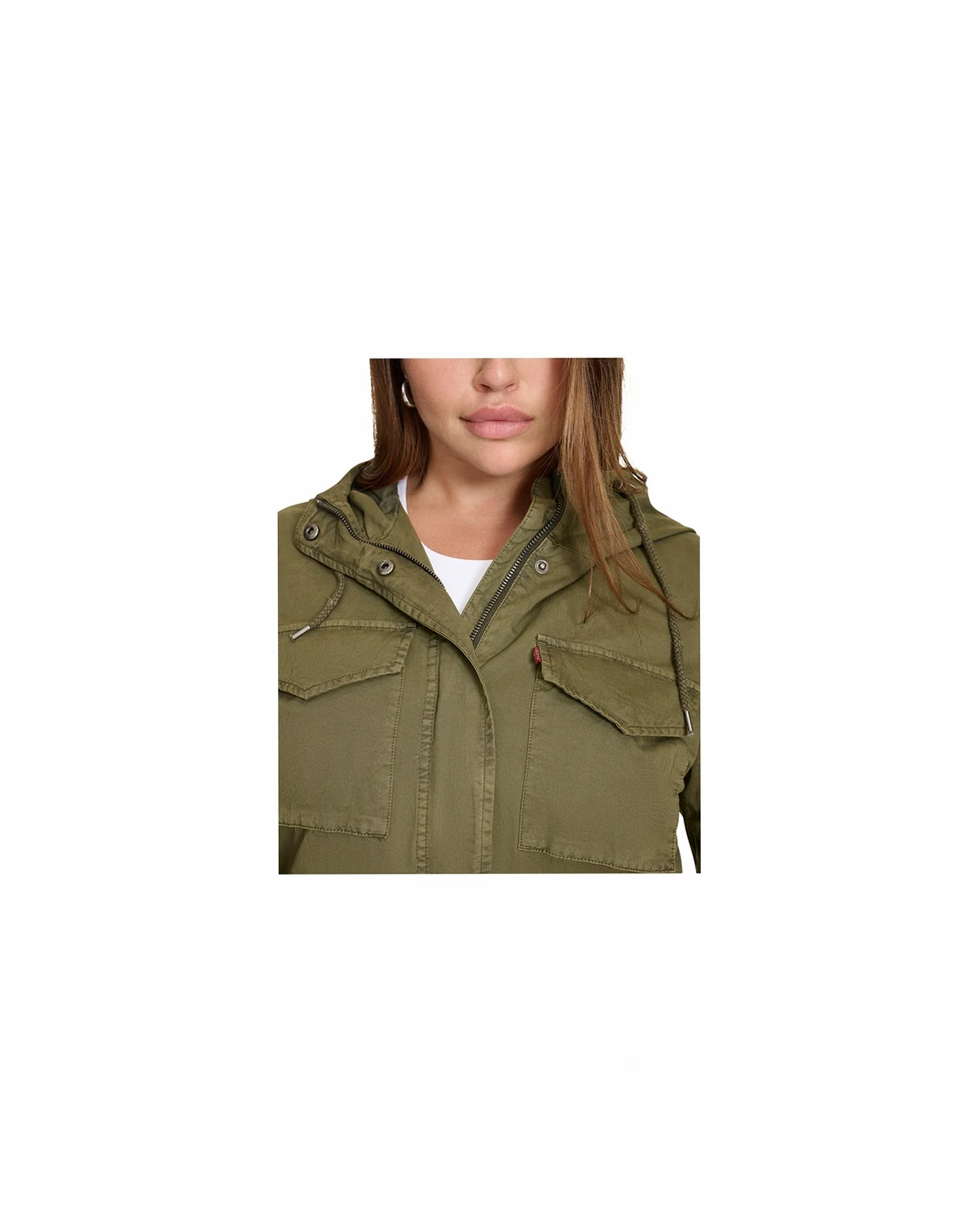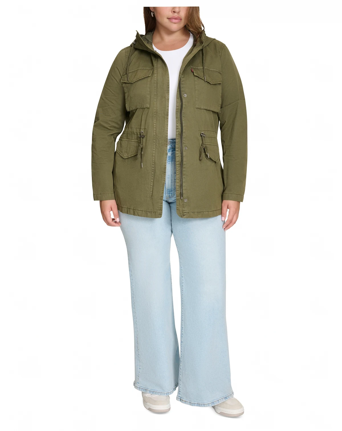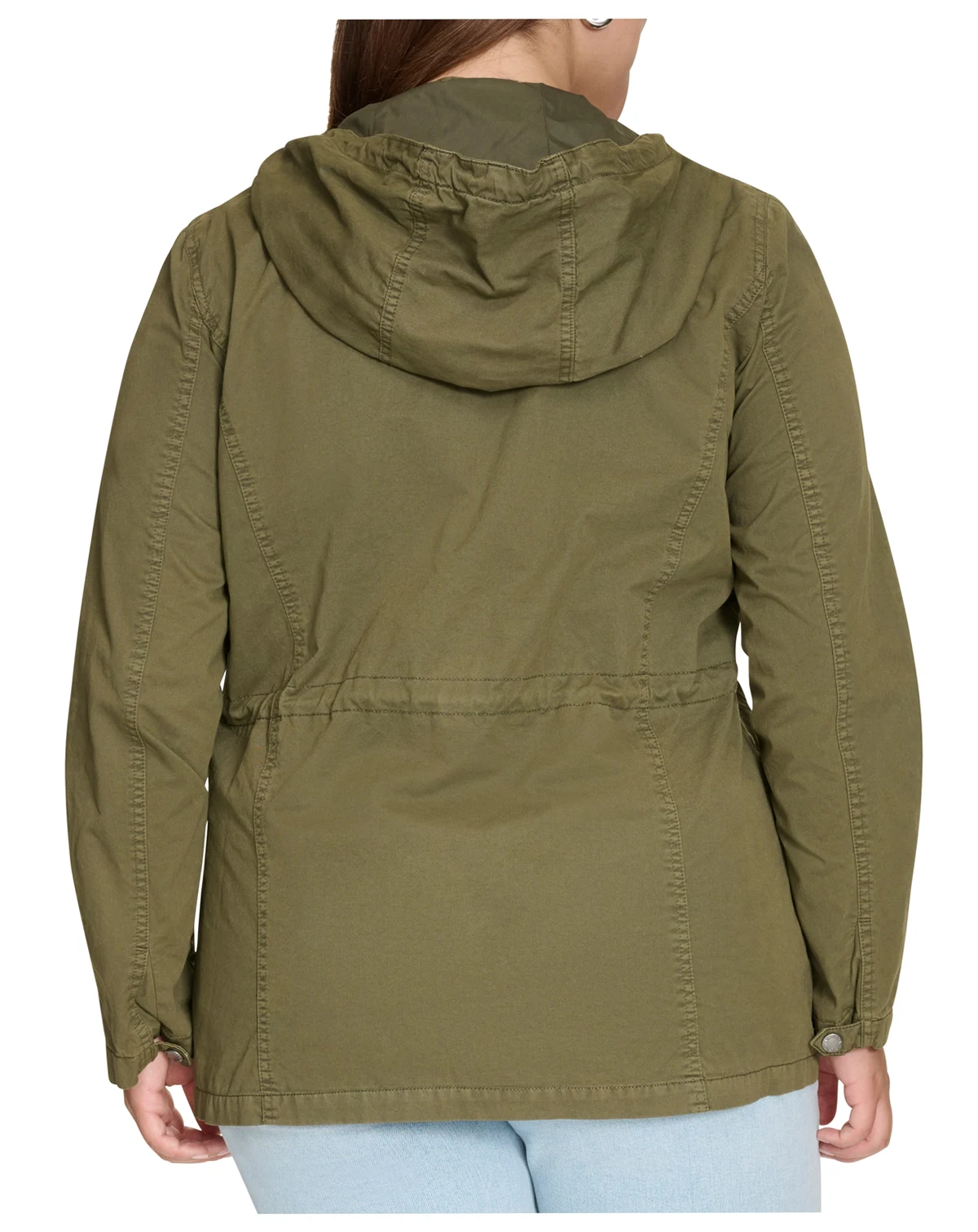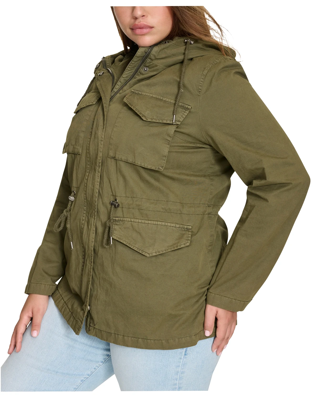 Plus Size Cotton Hooded Military Zip-Front Jacket