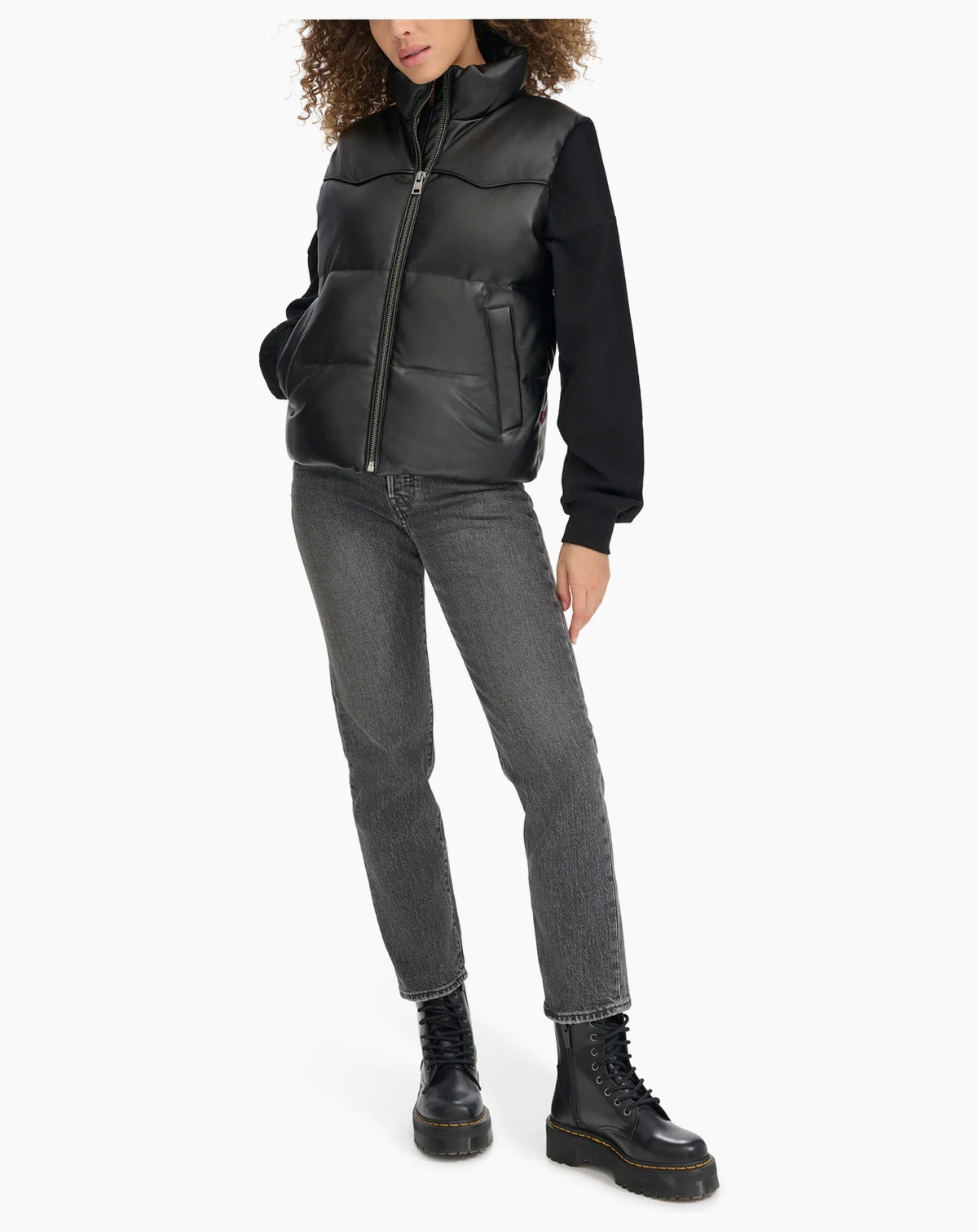 Embrace bold style with a touch of western charm. The sleek polyurethane exterior is elevated by classic quilted stitching for a modern, edgy look, while the arcuate detailing adds a subtle nod to western heritage. Lightweight yet insulated, this vest is perfect for layering during cooler days, offering warmth without the bulk. With its zip-front closure and fitted design, it effortlessly complements both casual and statement outfits. Whether you're out exploring or heading to a laid-back evening, this puffer vest brings style, warmth, and a hint of the Wild West to your wardrobe.