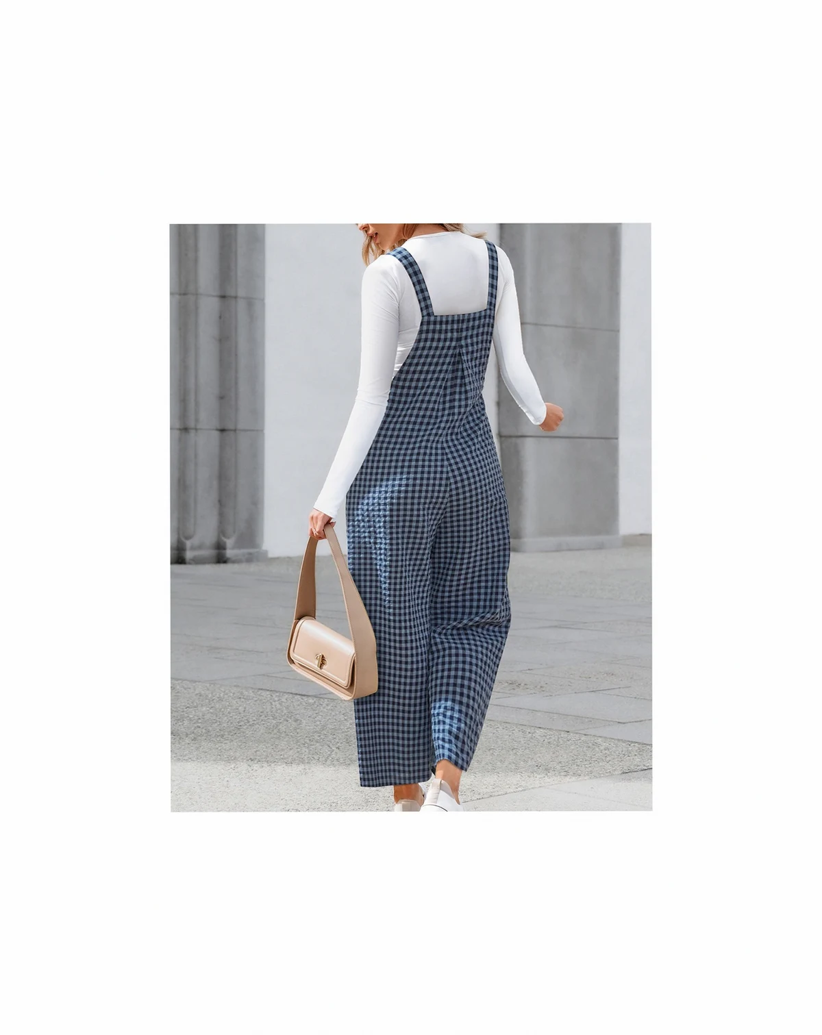 The All the Feels Checkered Jumpsuit brings easygoing charm with a playful edge! A square neckline, wide leg fit, and handy pockets make it a feel-good fave you ll want on repeat. Product Code: CAA13E5G026UU