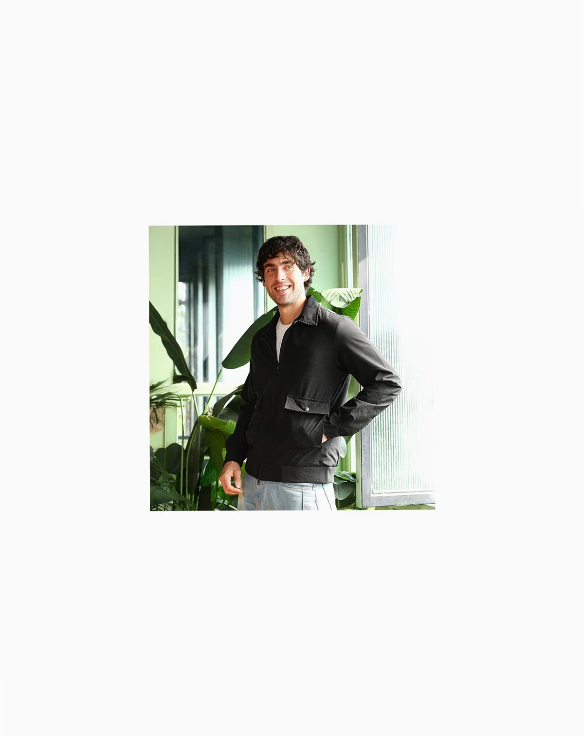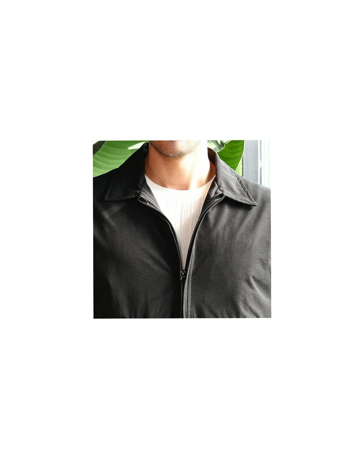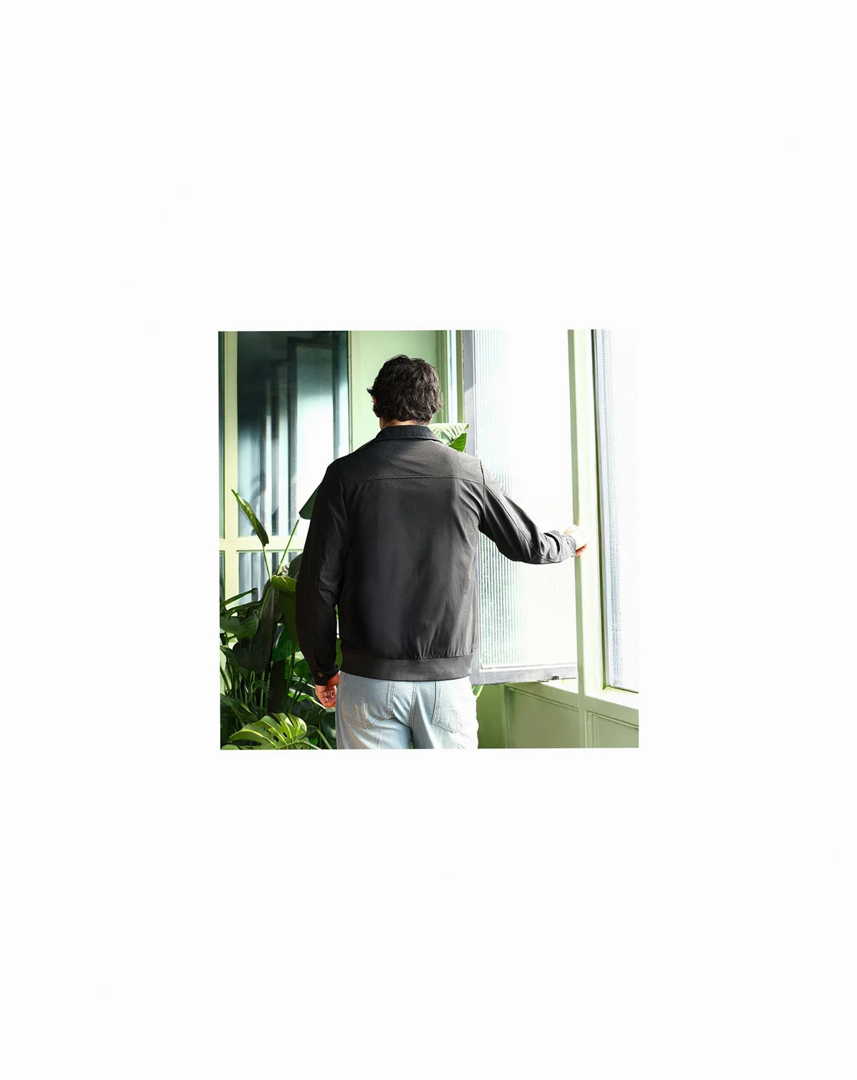 Men's Obsidian Black Zip-Front Geometric-Jacquard Jacket