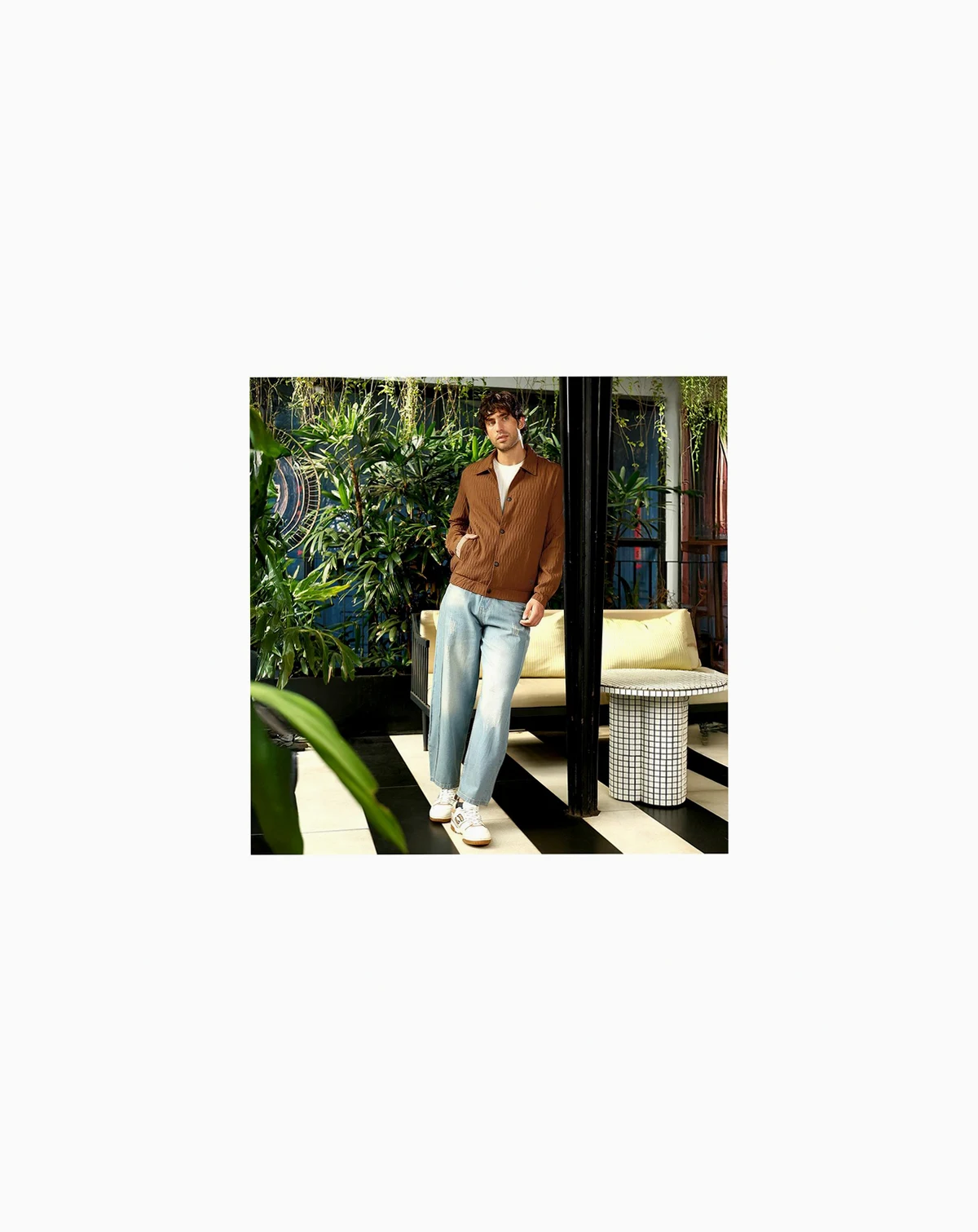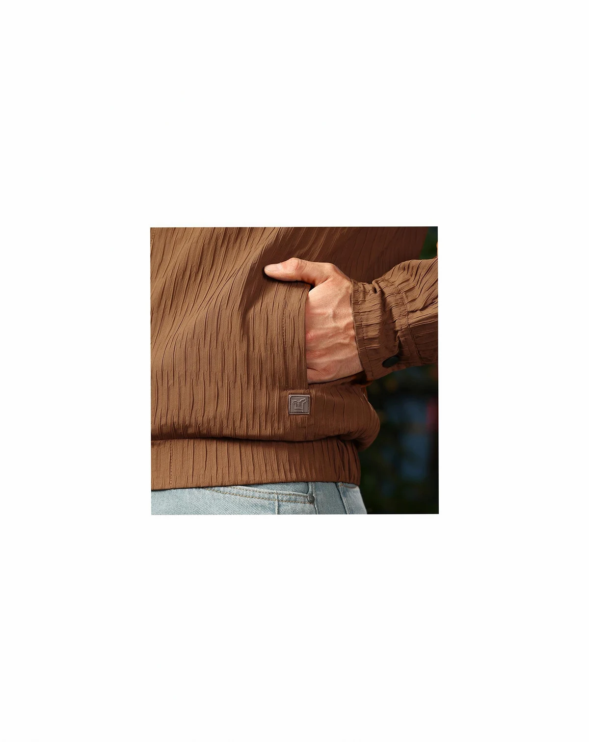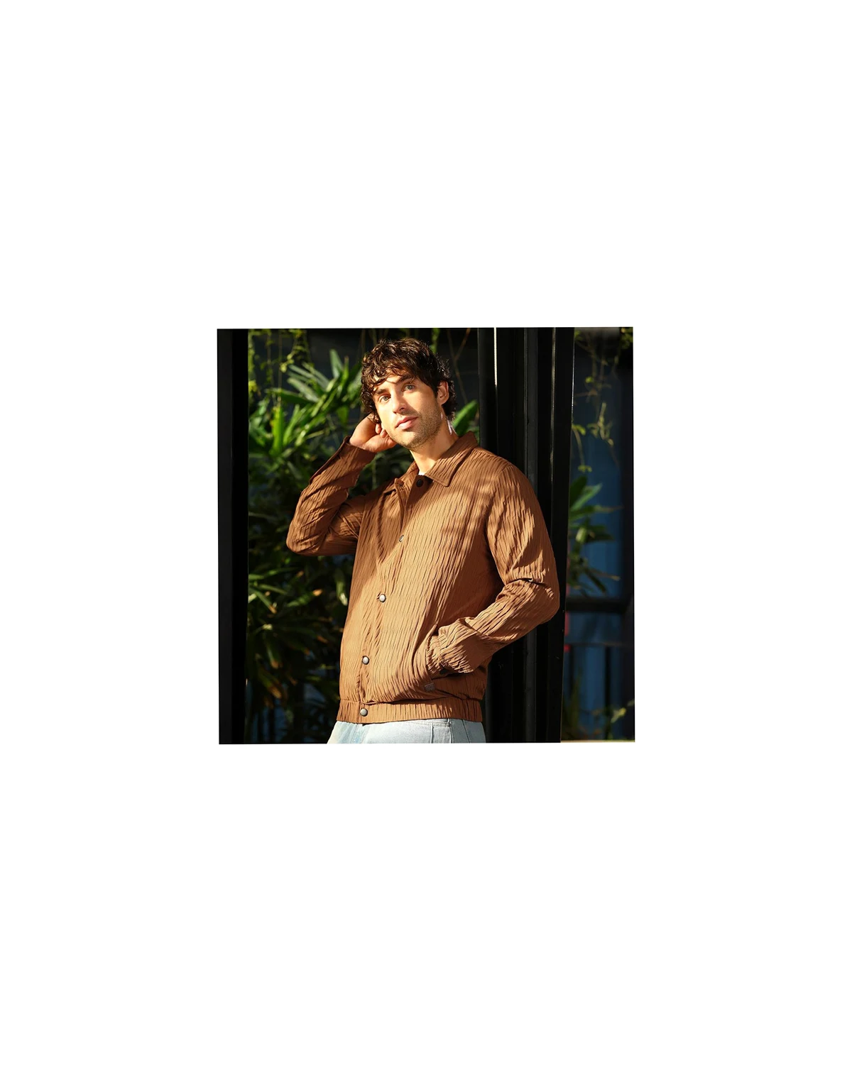 Men's Teddy Brown Crease-Tactile Bomber Jacket