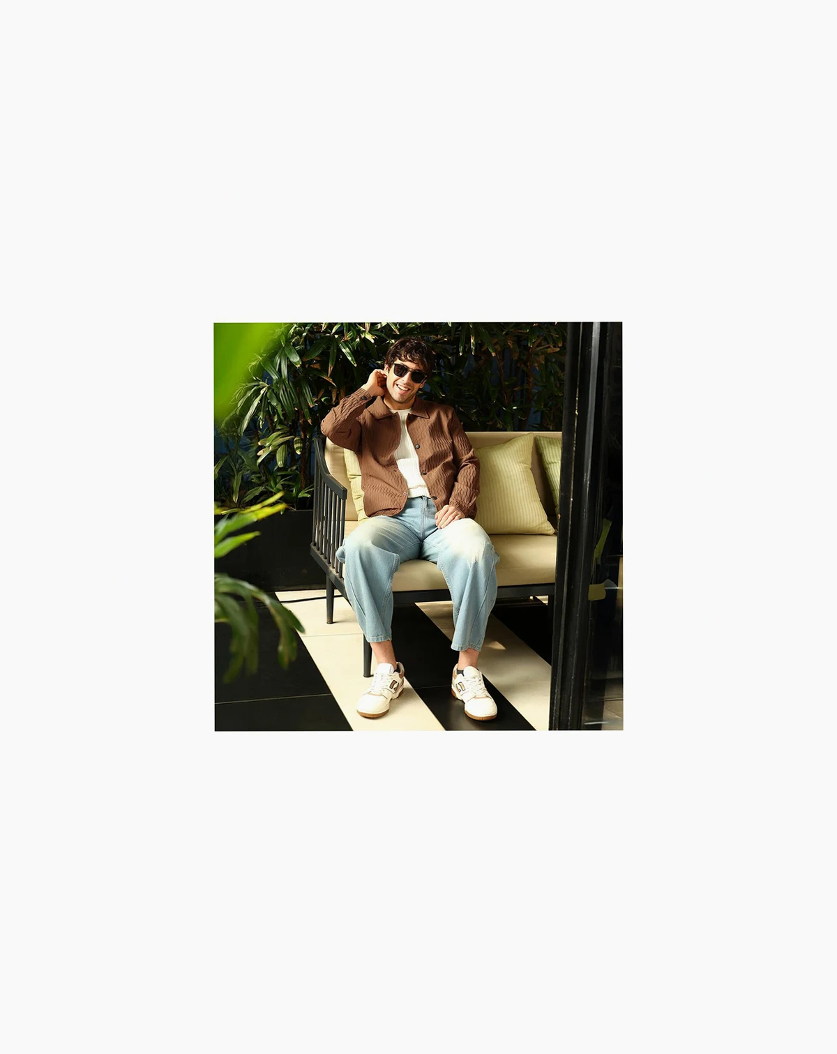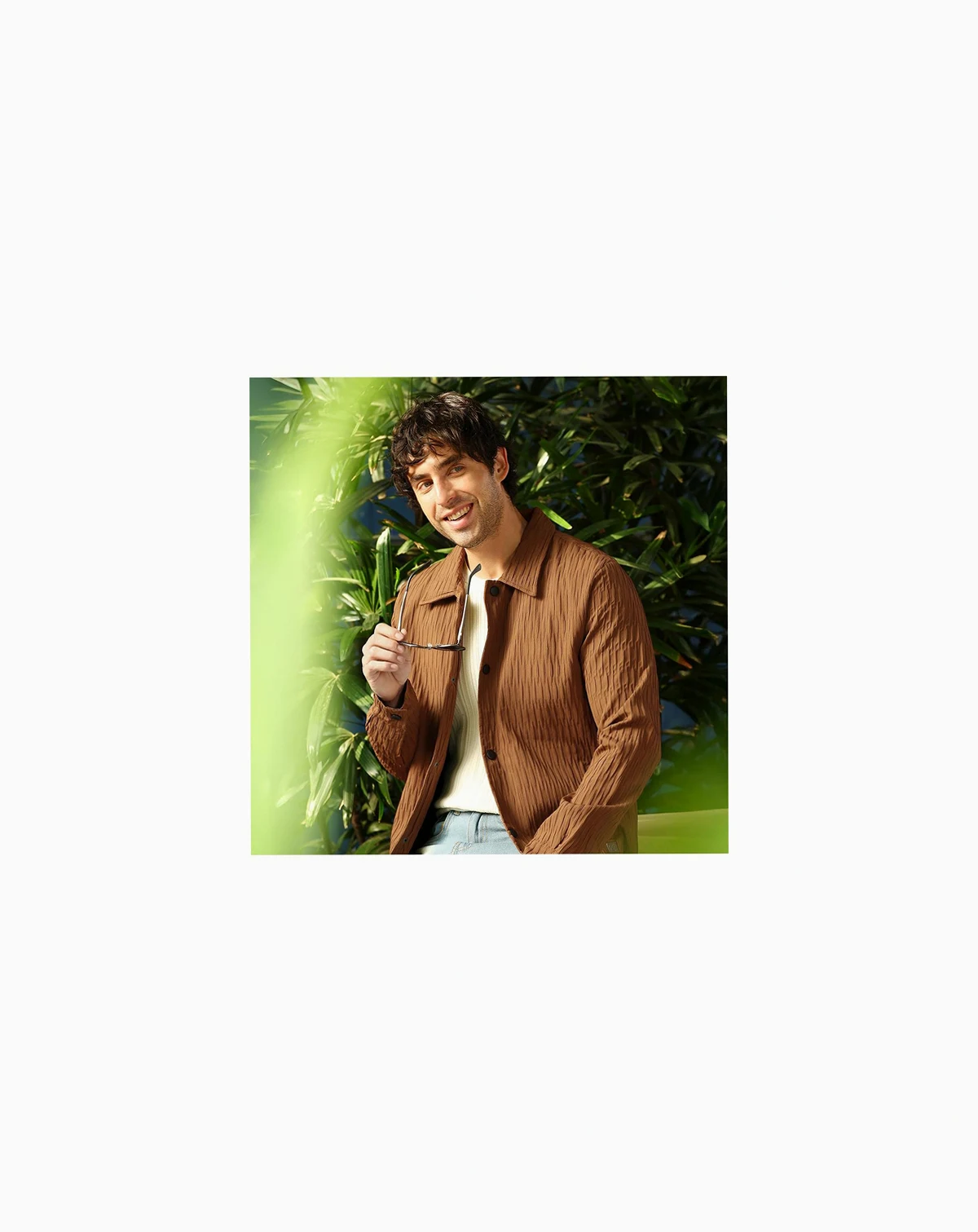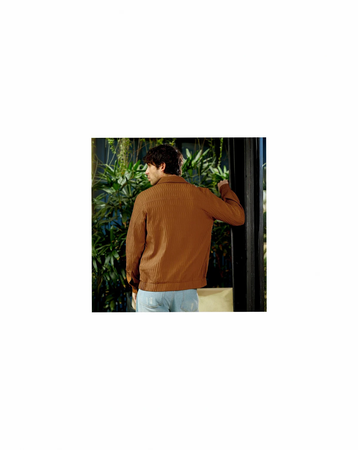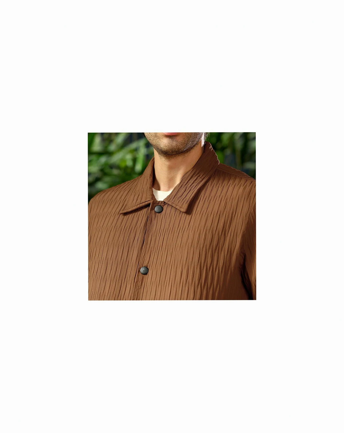 Men's Teddy Brown Crease-Tactile Bomber Jacket
