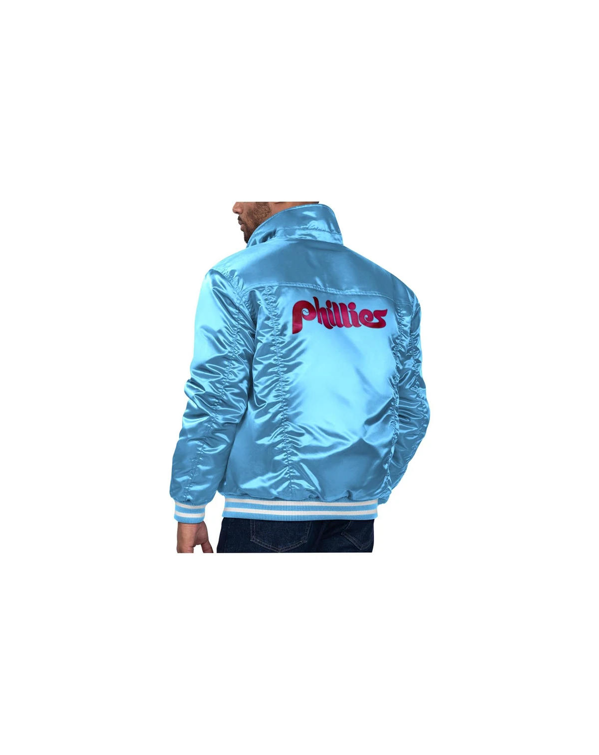 Two giants of the outerwear game, Starter and Levi's, have teamed up to knock it out of the park for Philadelphia Phillies fans with this Silver Tab Satin Full-Snap Trucker Jacket. It is a winning combination of iconic elements from Levi's Truckers and Starter satin jackets, including striped ribbed cuffs and hem and branded metal hardware. Soft satin and quilted lining check off the comfort factor while you root, root, root for the Philadelphia Phillies.