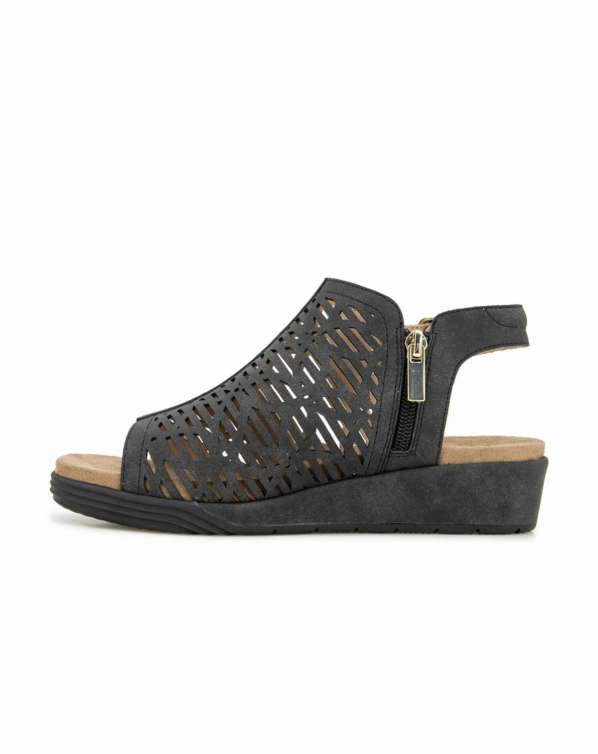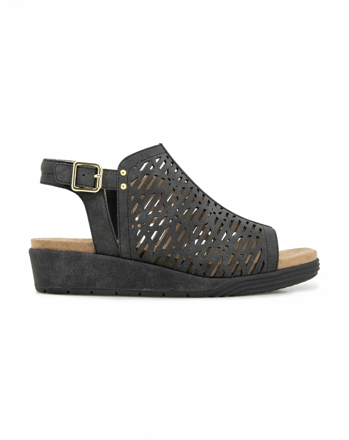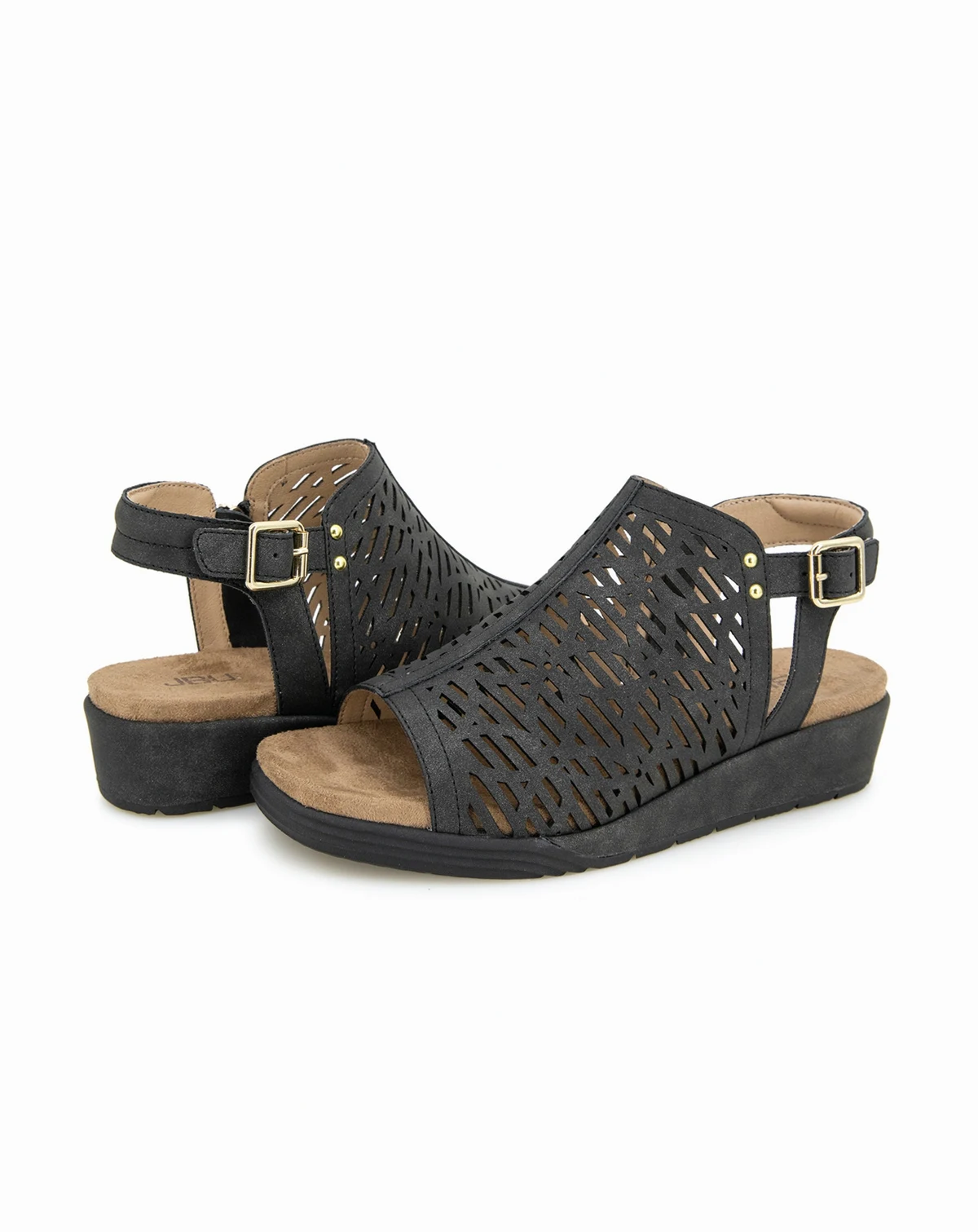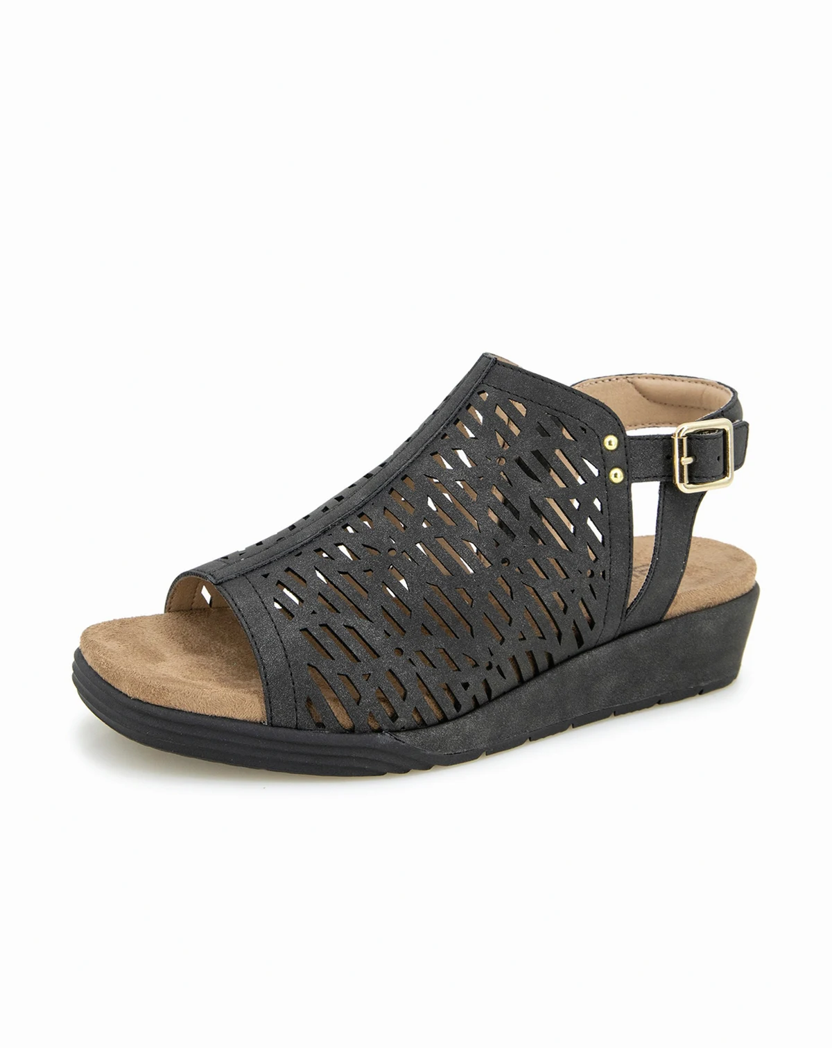 A closer look at the Tessa wedges reveals a sweet pattern of floral-inspired cutouts that add a touch of playfulness. Made from nubuck, they're set on short heels for a bit of lift and have a polished buckle closure that can be adjusted to your perfect fit. Contoured insoles and a flexible outsole ensure a comfortable stride.