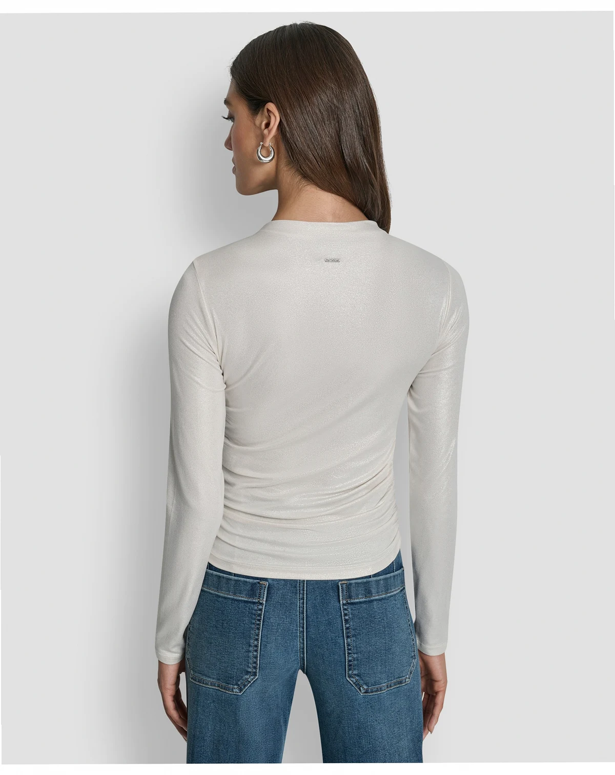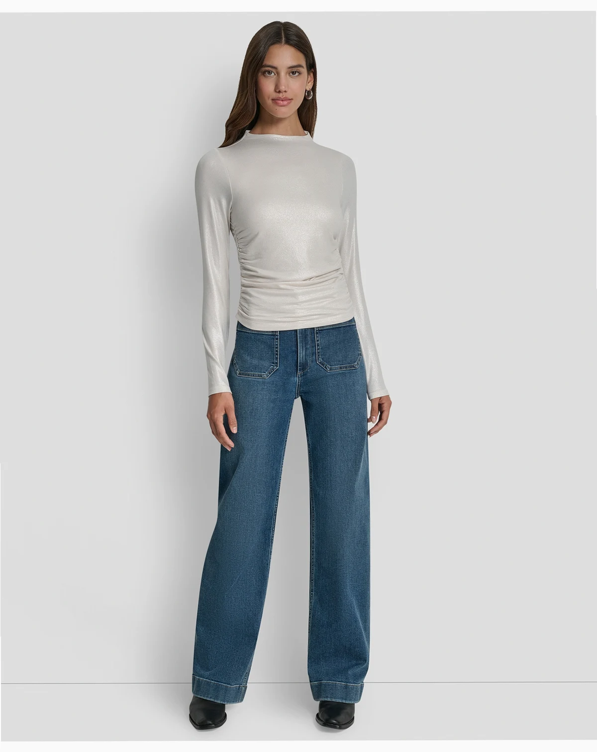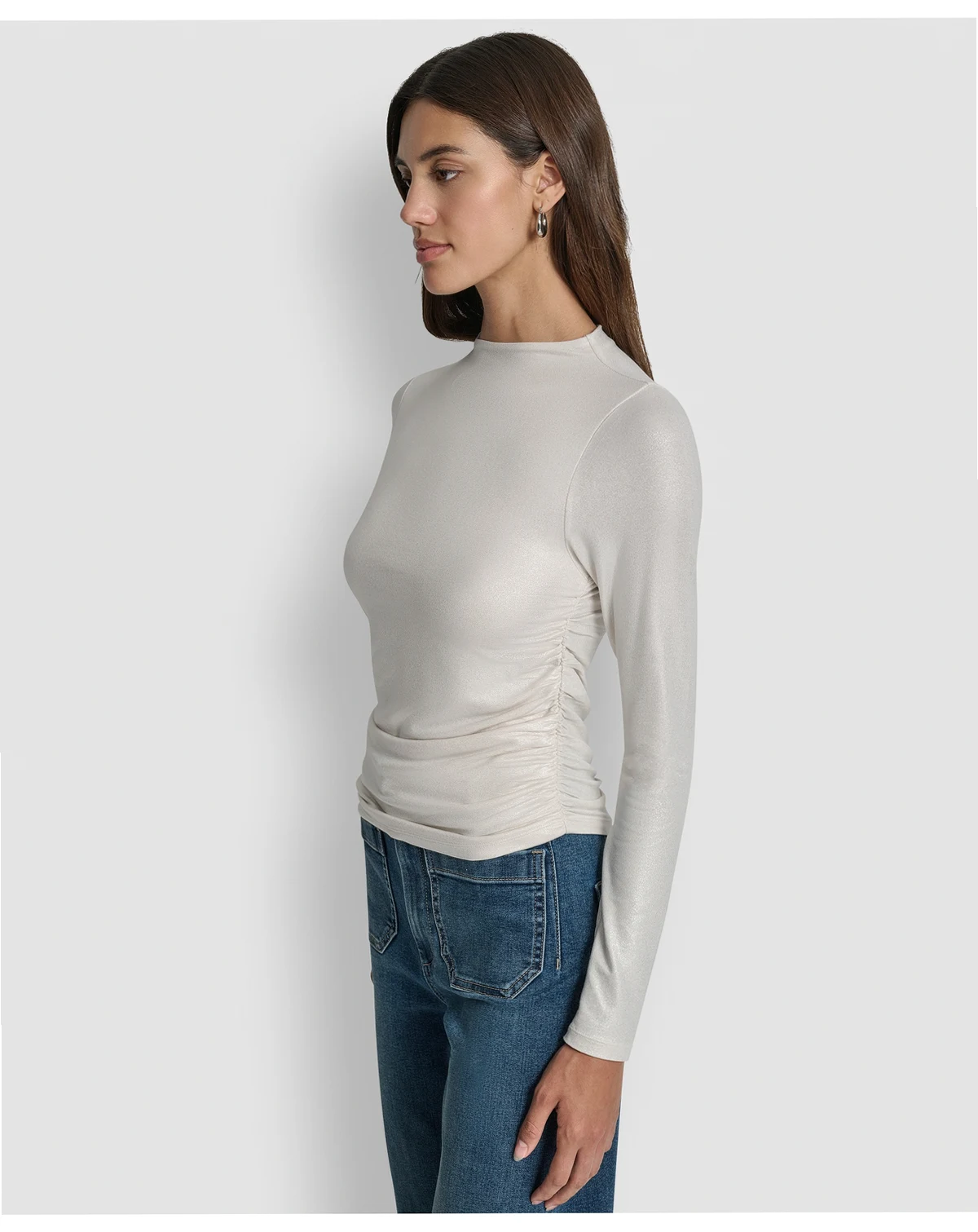 Elevate everyday sophistication with this top from DKNY Jeans. Featuring a mock neckline, long sleeves, and side ruched detailing, it creates a flattering silhouette while ensuring comfort.