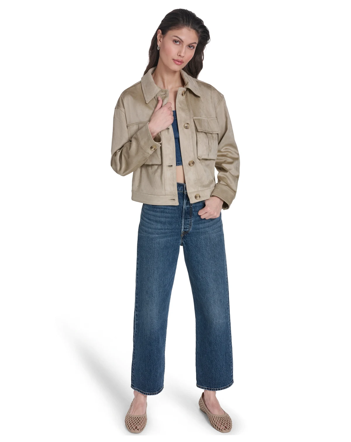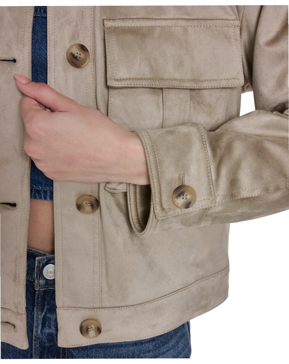 Elevate casual layering in this Levi's coat crafted from a soft faux suede shell and finished with a laydown collar for modern appeal. Snap chest pockets add functional storage, while a hip-length silhouette balances style and everyday ease.
