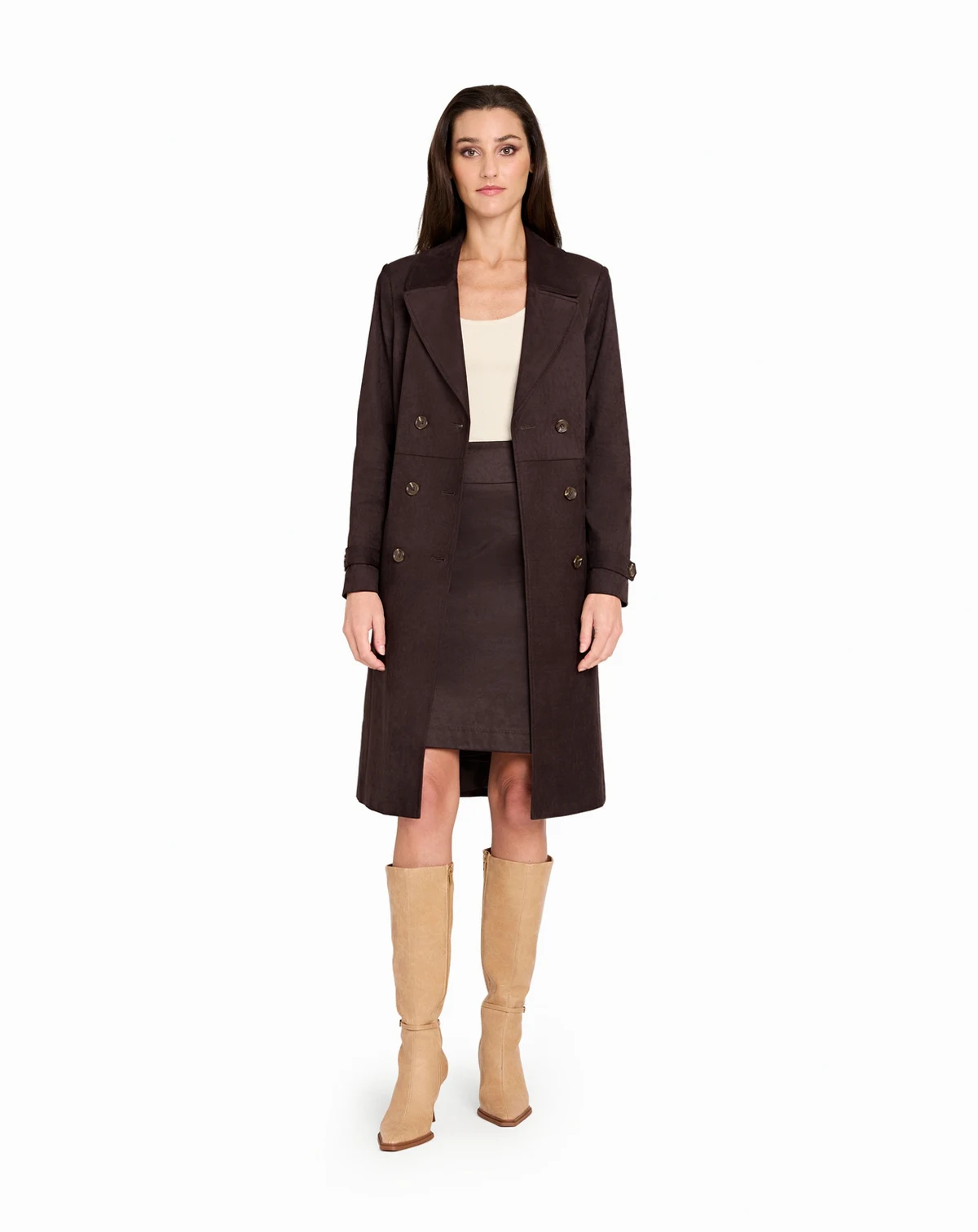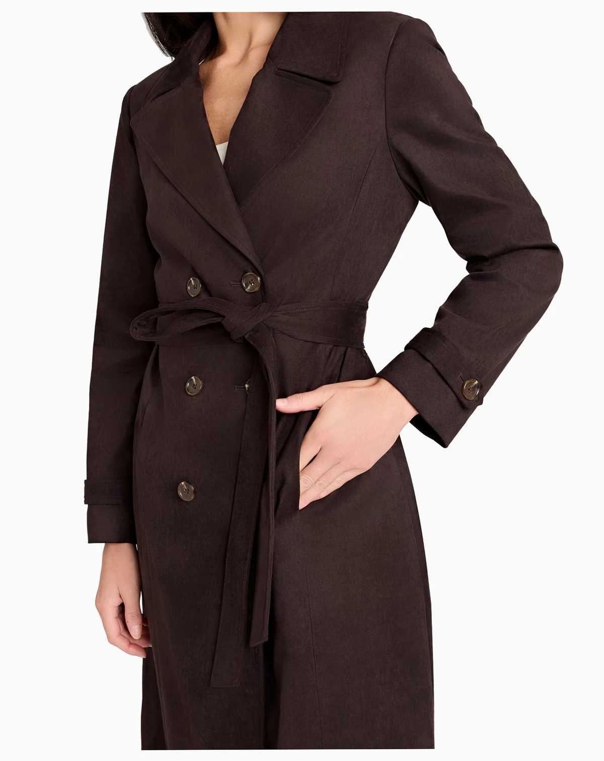 Elevate your layering wardrobe with this Tahari ASL trench coat, featuring long sleeves for timeless appeal. Designed with subtle shoulder padding, six stylish buttons, and a coordinating belt, it offers a structured and polished look.