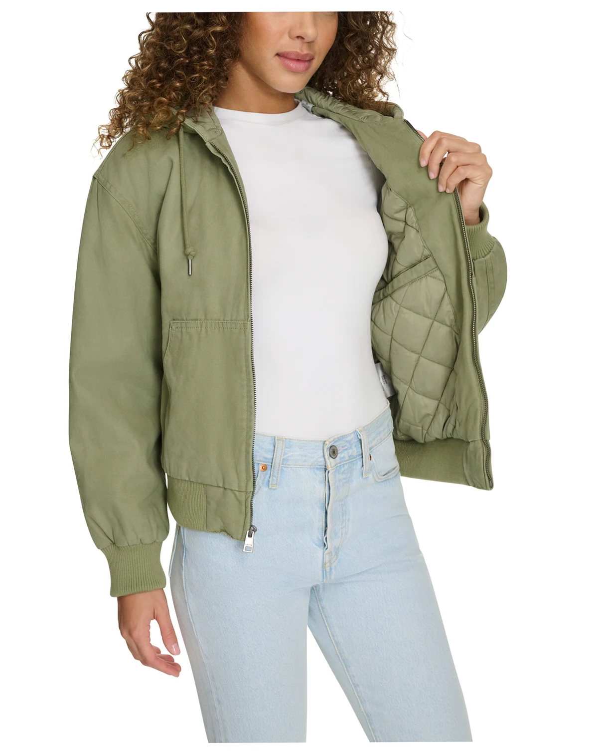 Stay cozy and stylish with this women's hooded bomber jacket from Levi's®, the perfect blend of warmth, comfort, and timeless cool.