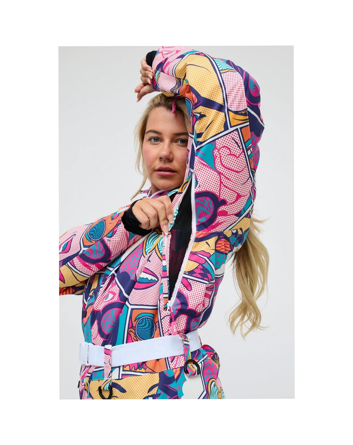 OOSC's ski suit is guaranteed to make a statement! It's made from polyester and packed with features to keep you warm and dry plus has a belt cinches the waist. Retro styling combined with modern, materials make this suit the perfect outfit for your next winter adventure.