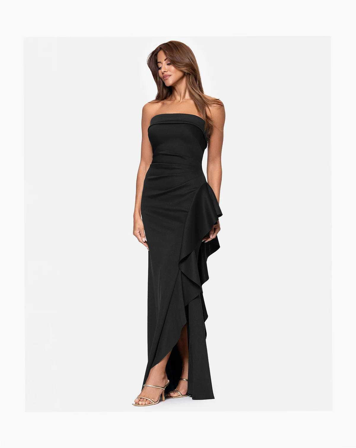 Approx. model height is 5'9" and she is wearing a size 4; Approx. 60-1/2" Length from center back to hem. Length is based on a size 4 and varies 1/4" between sizes