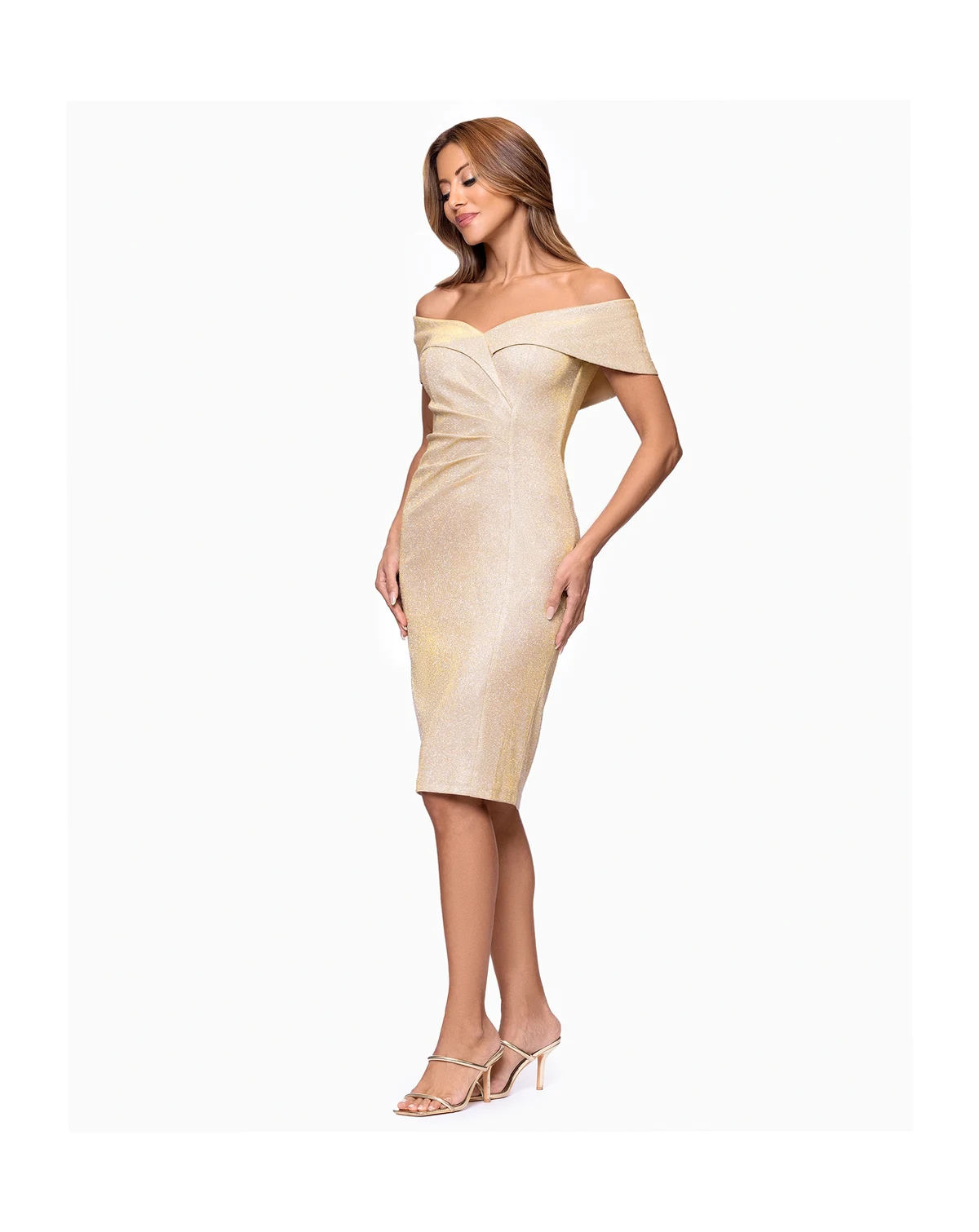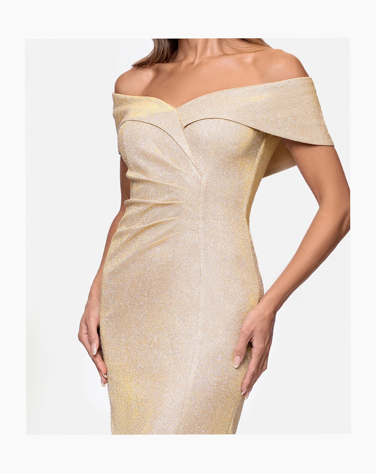 Shell: 88% polyester, 12% metallic; lining: 100% polyester; IMPORTANT NOTE: This item arrives with a return tag attached and instructions for removal. Once the tag is removed from the dress, this item cannot be returned.
