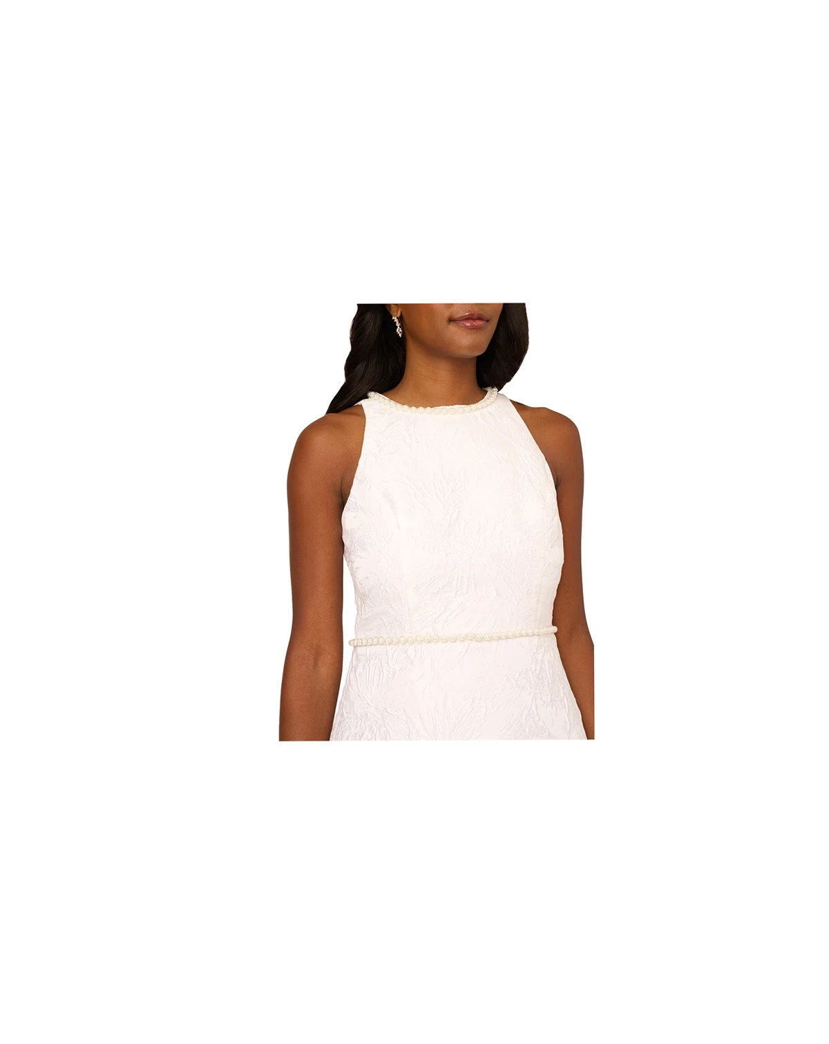 Enjoy textural interest in this short jacquard dress from Adrianna Papell, showcasing a versatile crew neck. A back zipper allows for easy wear and a comfortable feel.