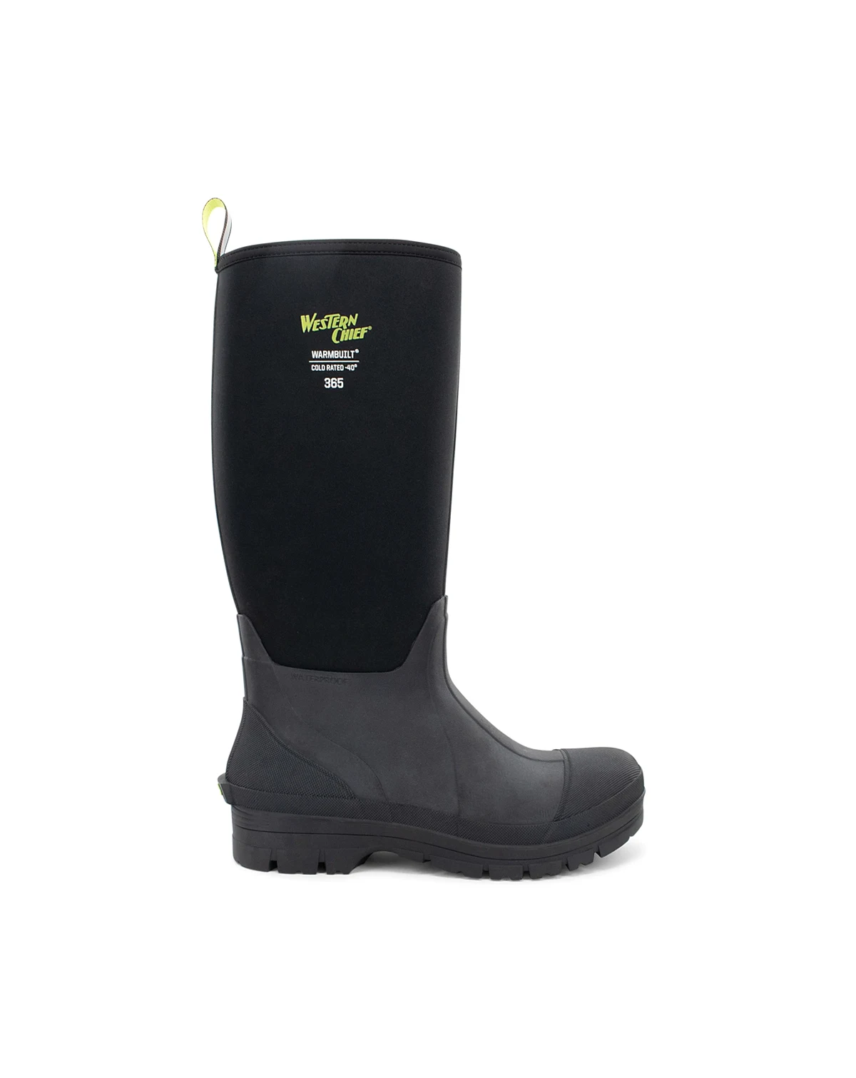 The Western Chief 365 Seamless Neoprene Tall Cold Weather Boot is suitable for both men and women seeking warmth, comfort, and protection. Featuring WarmBuilt cold rated -40° insulation, it keeps feet cozy while seamless waterproof rubber and neoprene provide all-day dryness. Insulated 6mm neoprene with printed fleece lining delivers extra warmth and comfort, and the high-density comfort foam insole ensures cushioned support. Anti-microbial odor control helps maintain freshness, and the anti-slip, non-marking rubber outsole provides reliable traction. With HyperVis webbing and a 16" tall height with a 16" max calf circumference, this boot is perfect for outdoor work, winter activities, or casual cold-weather wear.