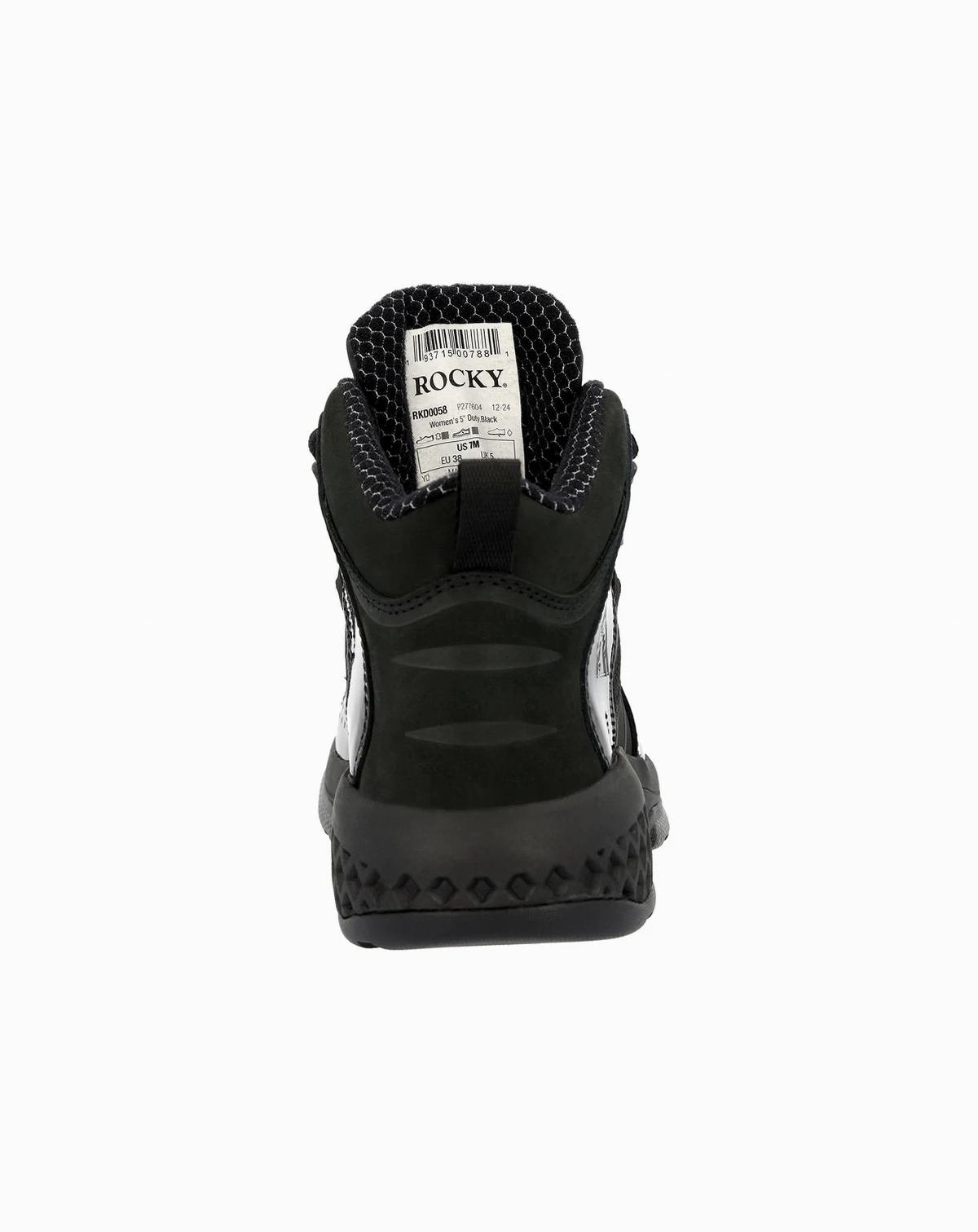 This non-metallic public service shoe for women is constructed with a breathable tactical grade mesh upper with high-abrasion TPU overlays for added structure, stability, and support. This shoes cement construction makes it light and flexible and its oil and slip resistant rubber outsole with a wider stance allows you perform in many environments without hesitation. Experience comfort in every step with our patented Comfort Tracks footbed. This combined with our Rocky Rebound EVA midsole and a fiberglass shank for added stability allows you to confidently go about your day in comfort. This shoe also features a KulKote thermal regulating lining, which helps regulate your body tempter providing a more comfortable experience. 6mm oval laces give you a more secure fit and a high gloss finish gives this innovative shoe a professional look.