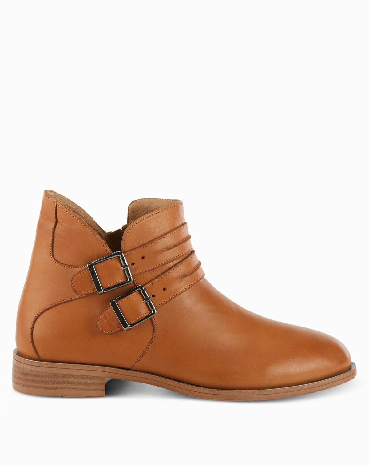 Everyday comfort meets modern flair in this versatile leather bootie. Featuring two decorative buckles for personality, a convenient inside zipper, and a cushioned leather footbed, this sleek silhouette offers sturdy support, flexibility, and effortless wear from morning to night.