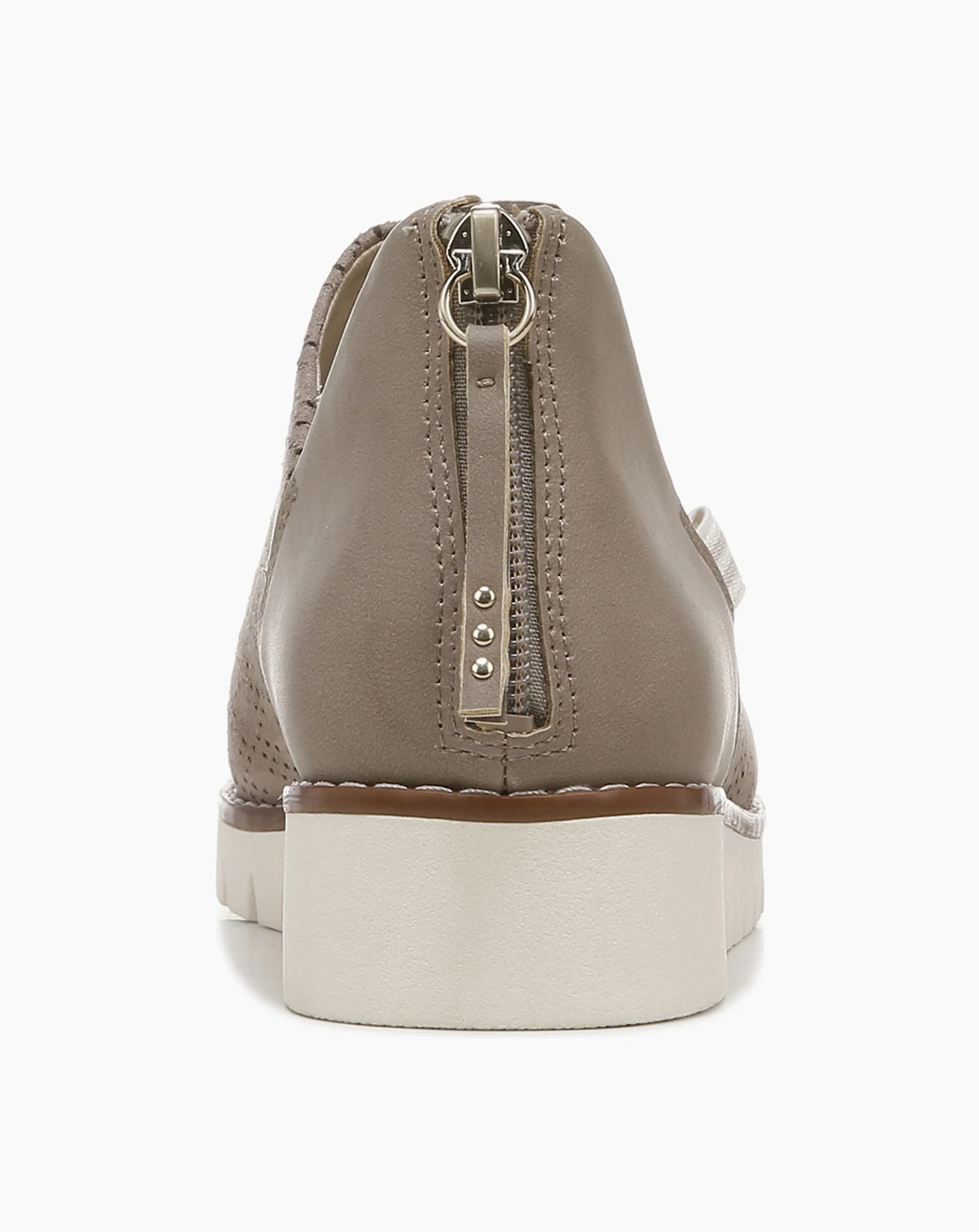 Unbelievably comfy, unbelievably stylish. You won't be able to get over this must-have silhouette. Microsuede upper. Almond toe. Back zip. Perforated detailing. Soft linings. Hidden gore for extra flexibility. Stitched welt design. Antimicrobial BE FREE® Energy Technology insole with 3 distinct zones designed for maximum comfort: extra support under the toe, high-recovery foam at the ball of the foot, and dense foam cradling the heel. Flexible, durable rubber-blend lug sole. 1.25-inch heel.