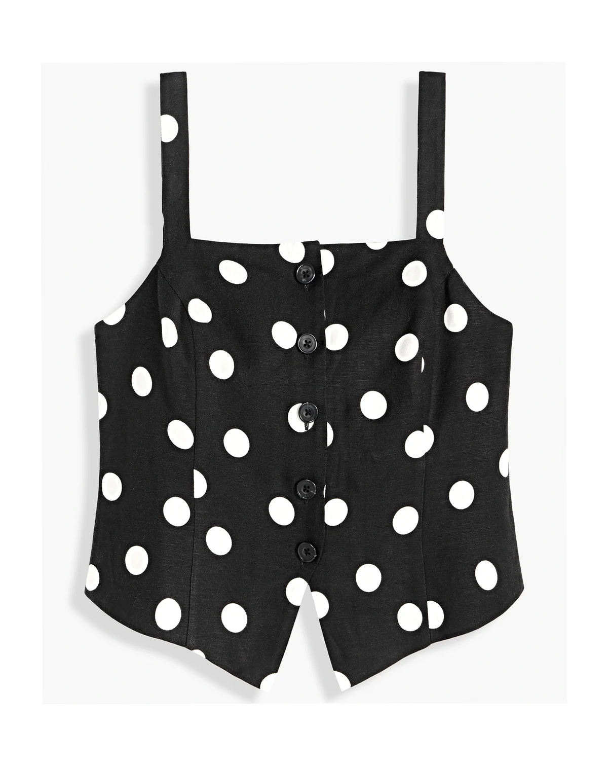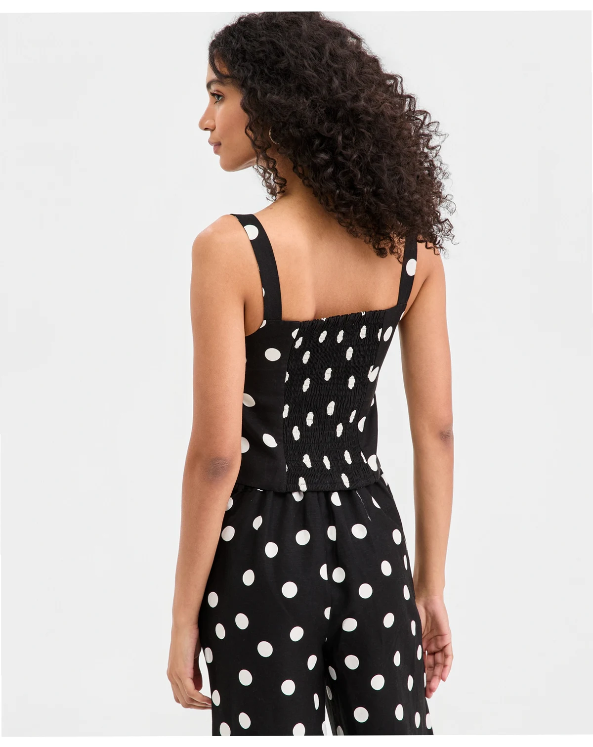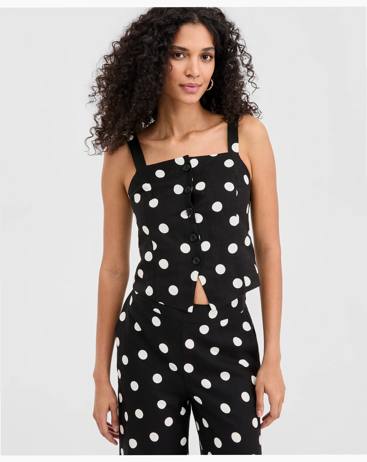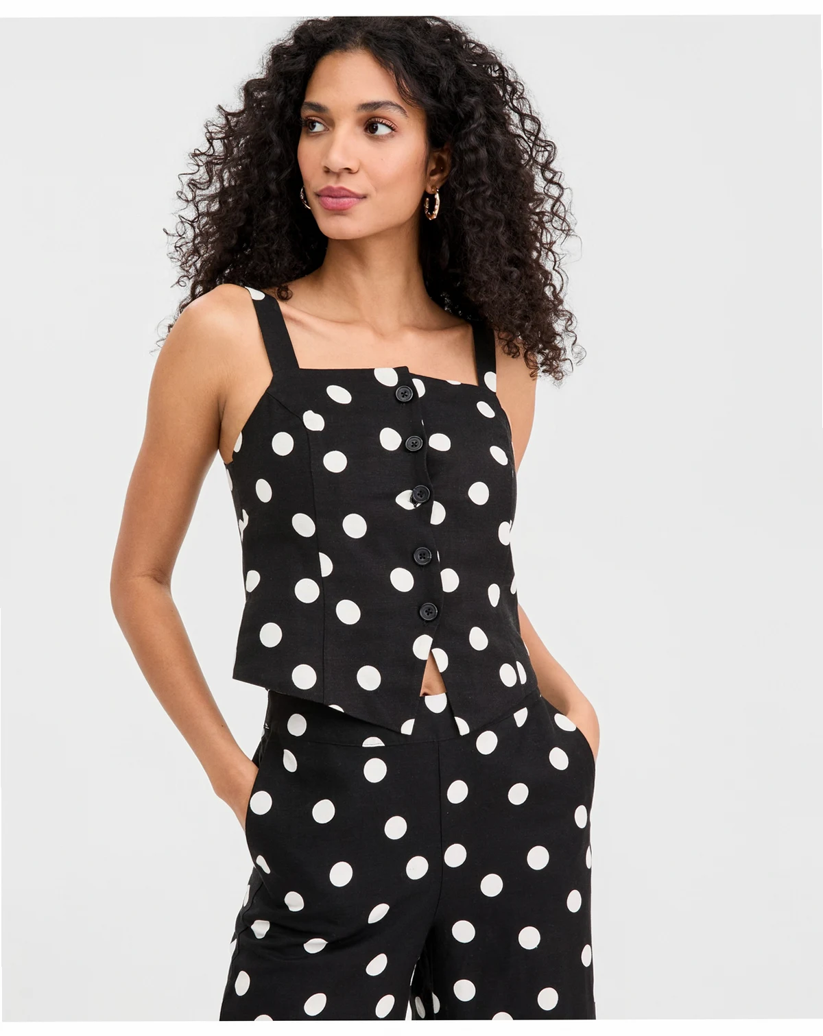 A punchy polka dot print wakes up our square-neck, vest-style tank. Wear it with the matching cropped pants or style it with jeans or shorts instead. ABOUT THE BRAND: On 34th was designed for and with women like you. Made for your body, your style, and your truth. As your wardrobe's BFF, these mix-and-match pieces work with everything in your closet.
