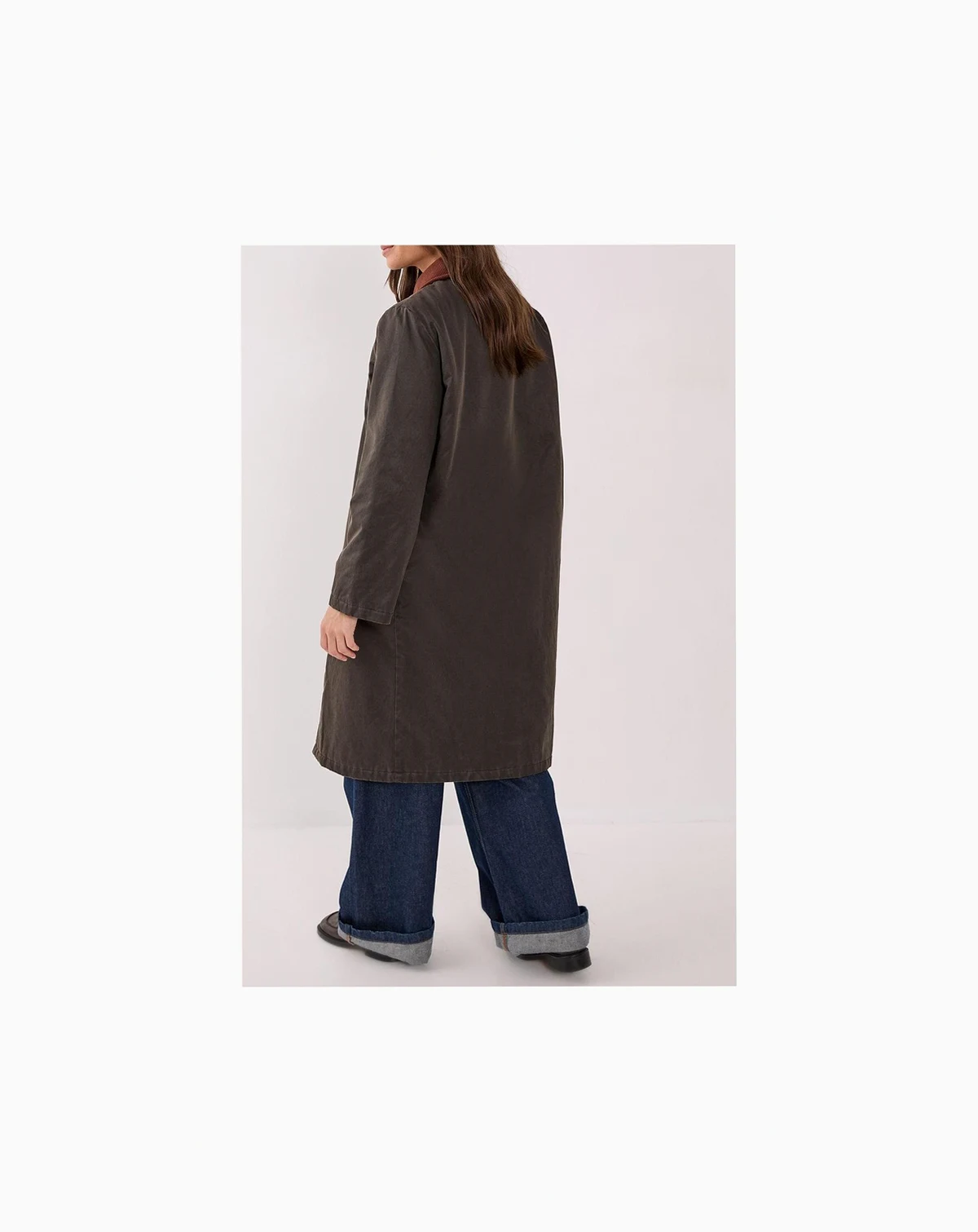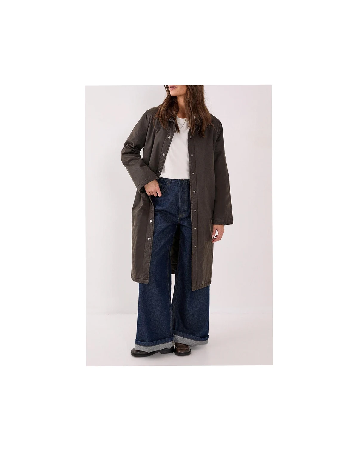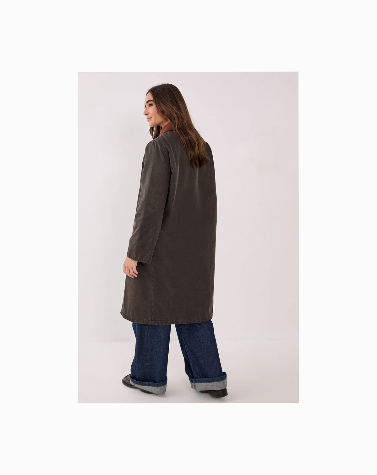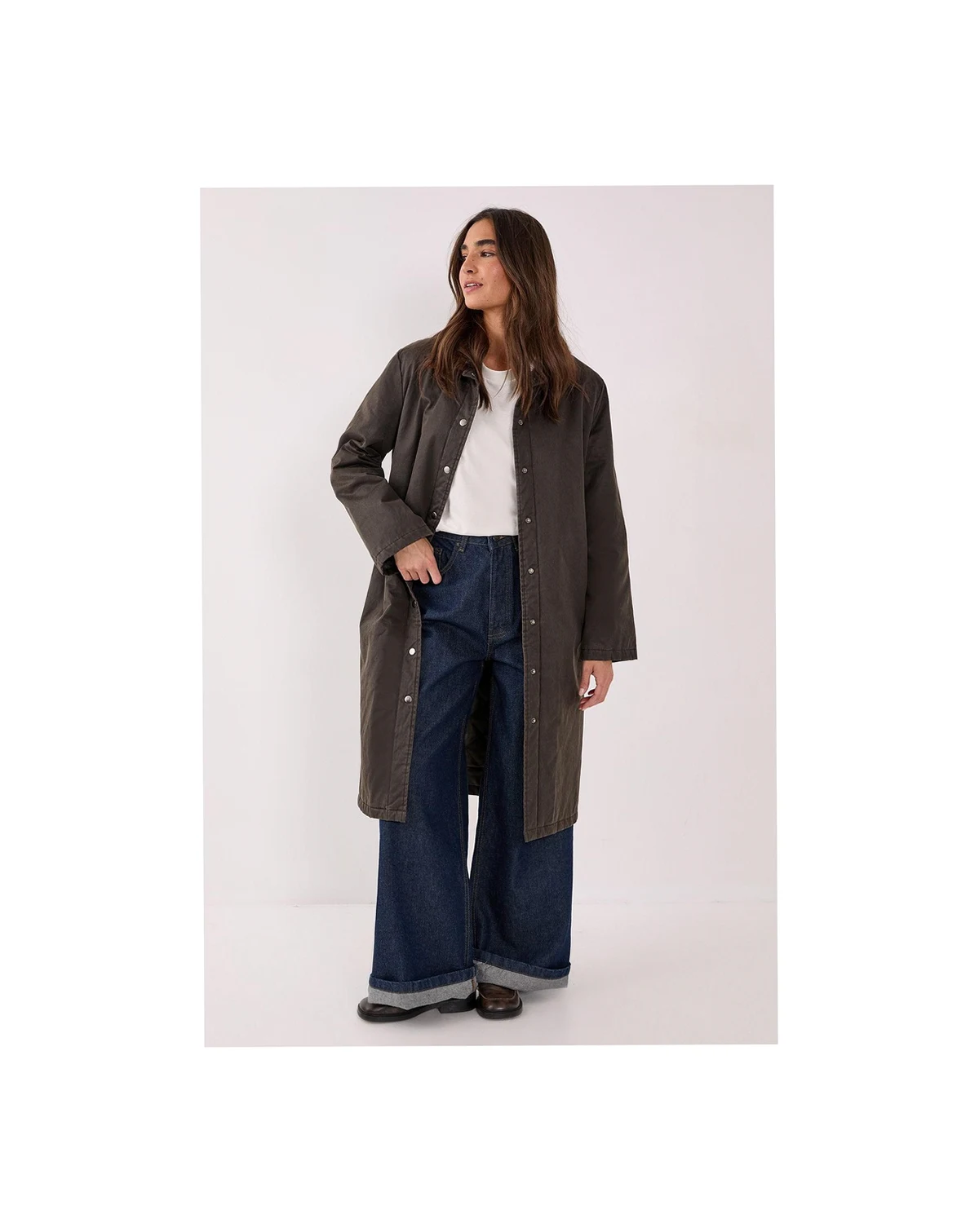 Make a statement in this distinctive longline coat featuring a wax effect finish that combines practicality with style. The contrasting cord collar adds a touch of countryside charm to this city essential. Perfect for unpredictable weather, this coat offers both protection and style in equal measure. Layer over wide-leg jeans and a simple white tee for an effortlessly cool weekend look, or pair with a jumper dress and chunky boots when temperatures drop.