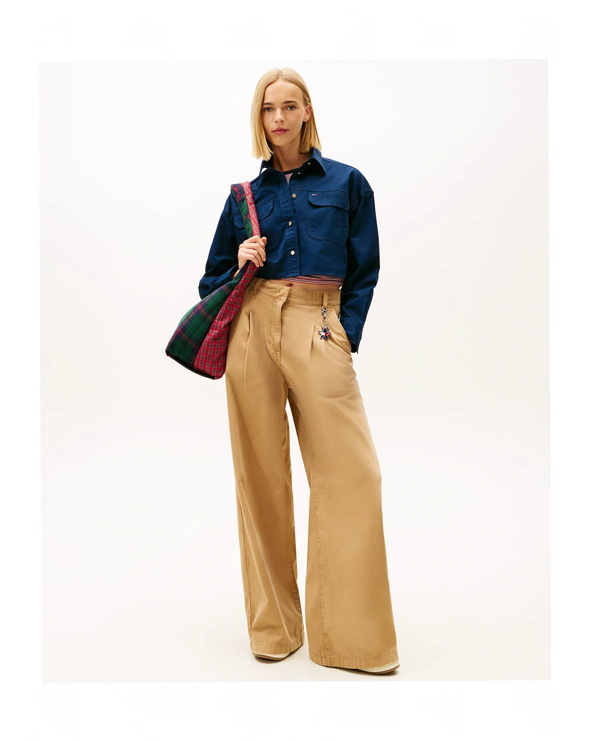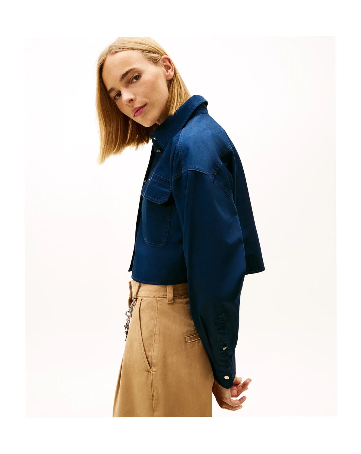 Cut in a cropped utility style, this shirt from Tommy Jeans features a collared neckline and long sleeves. The relaxed fit and two front pockets offer a modern, casual look.