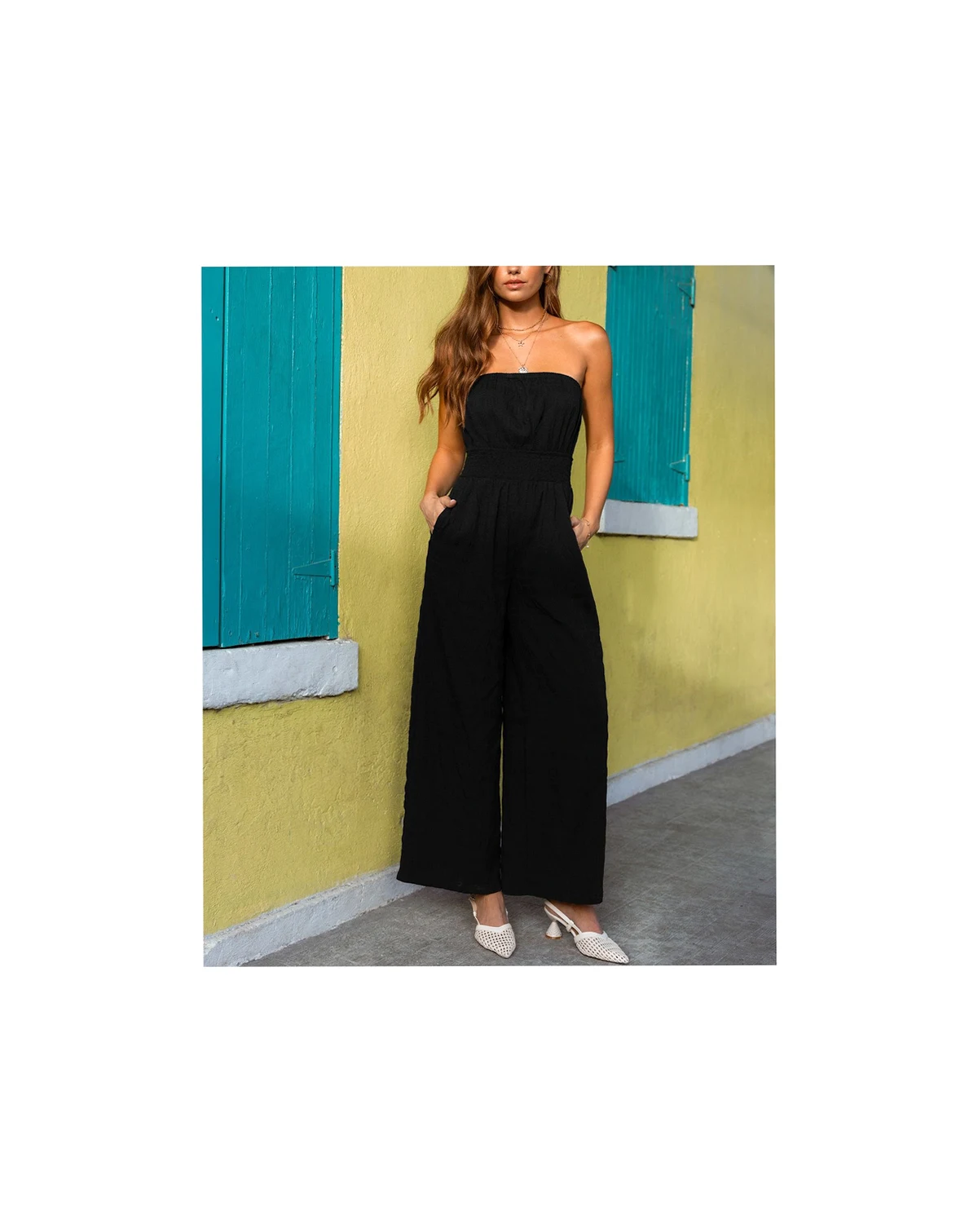 The Sunset Over the Cays Black Jumpsuit captures that warm, easy island moment! The straight neckline and sleeveless cut keep things breezy, while the smocked waist and wide-leg silhouette create a relaxed, flattering fit. Product code: CAA13E5M006AA
