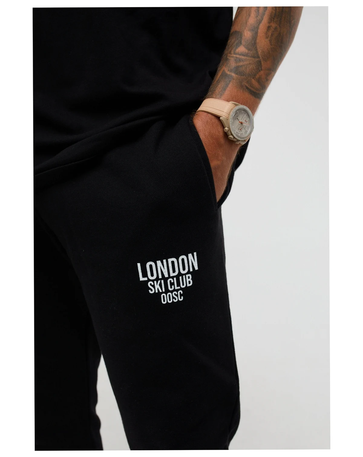 The London Ski Club sweatpant is crafted from a luxury heavyweight weight organic cotton, with a regular fit. It features a small London Ski Club logo on the front.