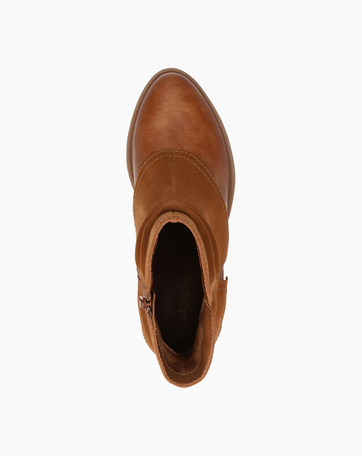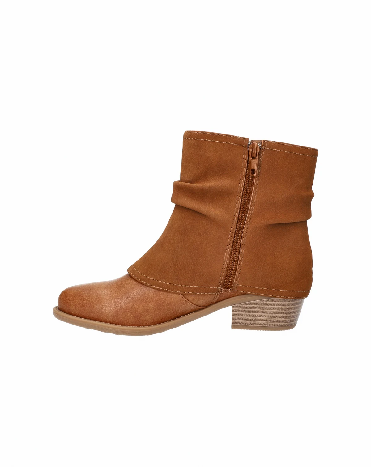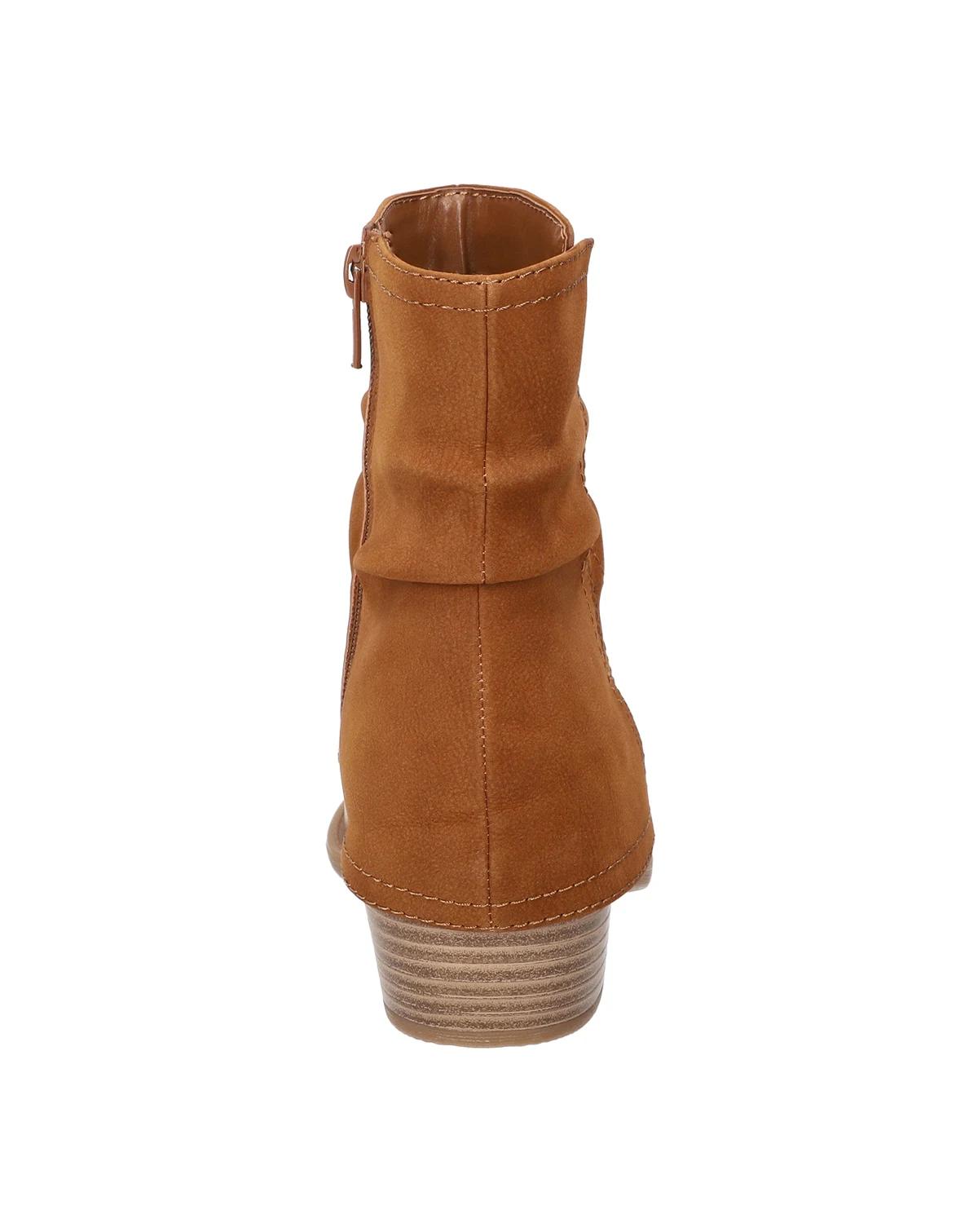 Celebrate style with the contemporary on-trend new Kudos ankle boot by Easy Street. Designed for fashion and comfort. The soft slouch overlay detail and underslung block heel will help transition any outfit to casual and fun Padded heel-to-toe for added comfort and an inside zipper for easy on/off.