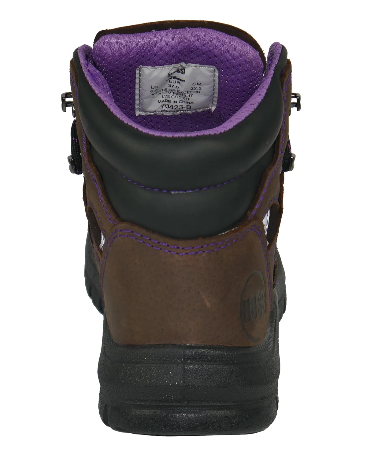 Designed for women who need dependable protection without sacrificing comfort or style, the HOSS Lily Womens Steel Toe Work Boot delivers jobsite-ready performance in a refined 6-inch silhouette. This women s work boot features a steel safety toe certified to ASTM F2413-18 F/I/C EH, providing reliable impact, compression, and electrical hazard protection. The full-grain tumbled leather upper offers durable wear with a polished, professional look, while a suede tongue and padded collar enhance comfort during long shifts. A HyDry waterproof membrane helps keep feet dry in wet environments. Underfoot, a premium PU memory foam insole cushions each step for all-day support, and a direct-attach dual-density slip-resistant outsole delivers confident traction on oil-, water-, and chemical-exposed surfaces, tested to a .55 oily and wet rating. Built for women working in construction, manufacturing, warehouse, and industrial settings, the Lily balances protection, comfort, and style.