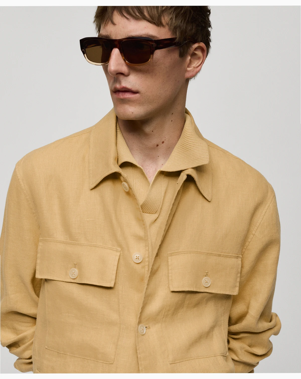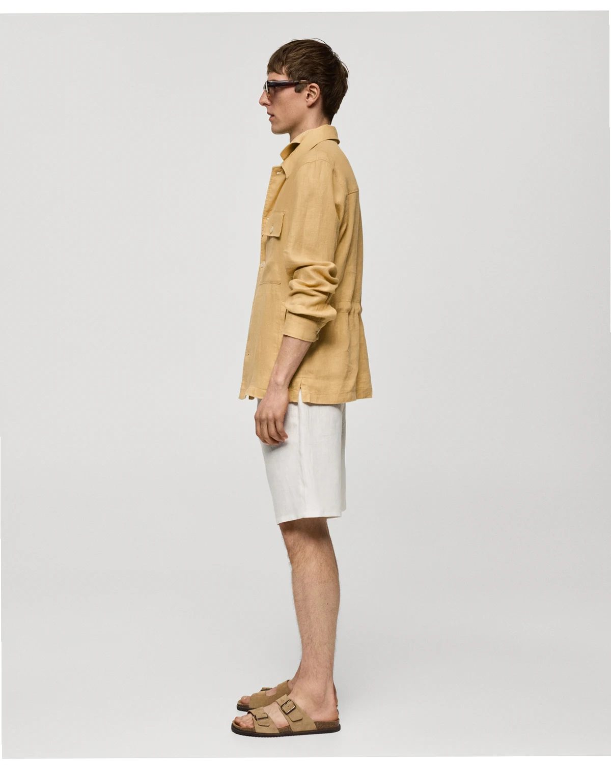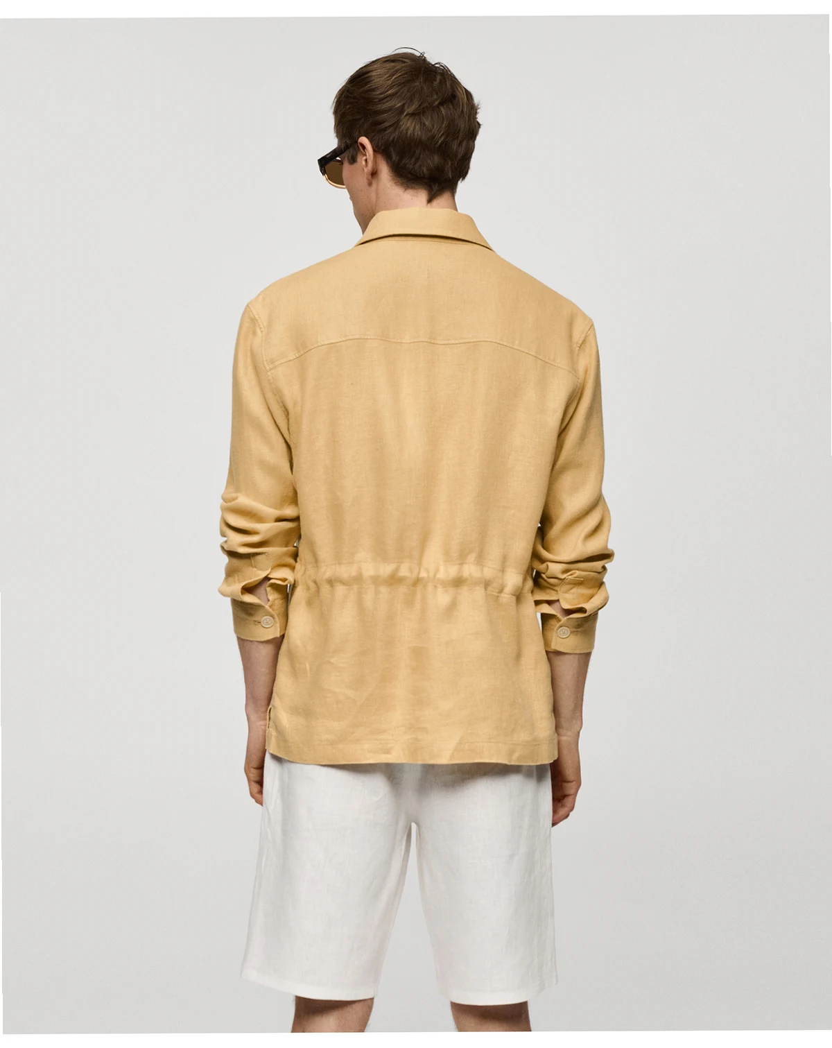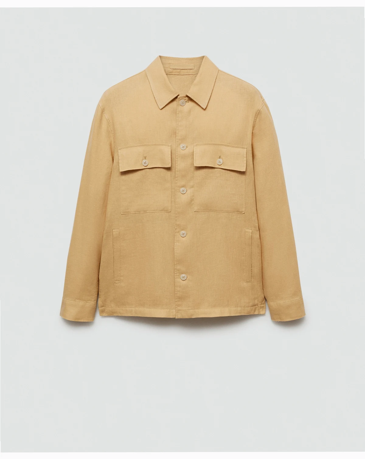 This Overshirt With Pockets from Mango combines style and comfort. It features two flap and patch pockets on front, two front welt pockets, adjustable inner drawstring waist, and straight hem with side slits.