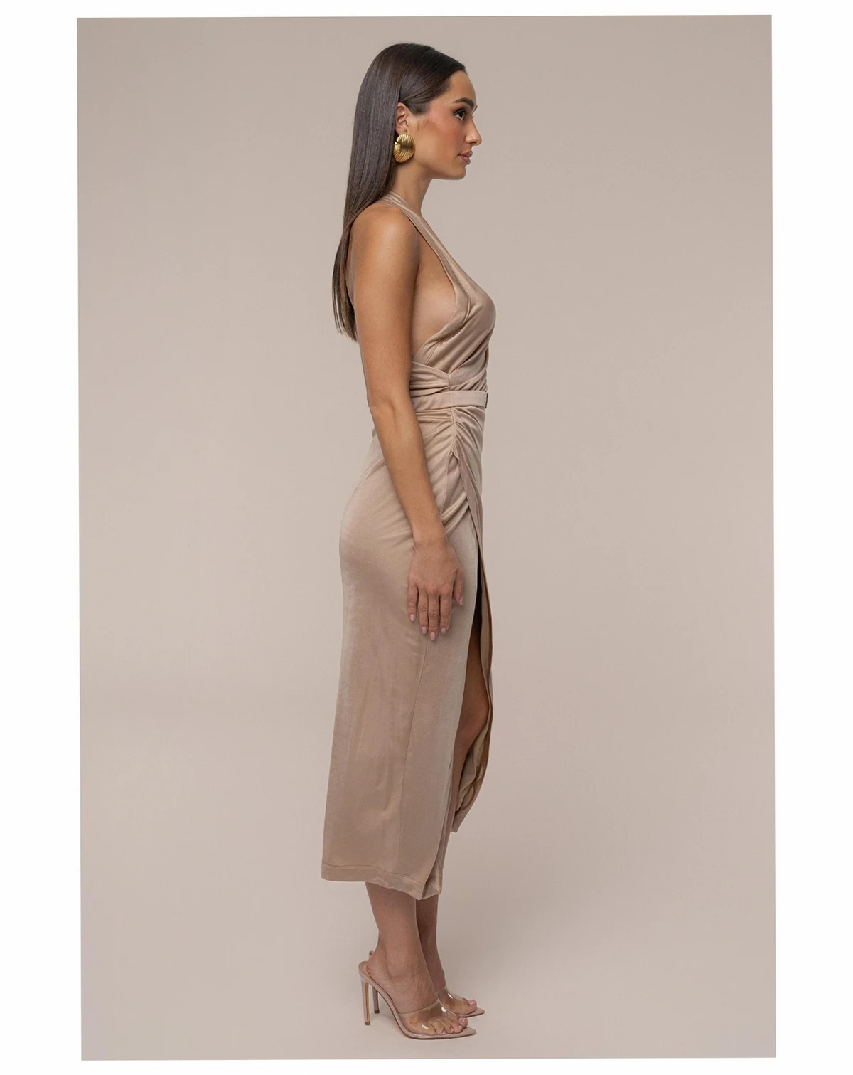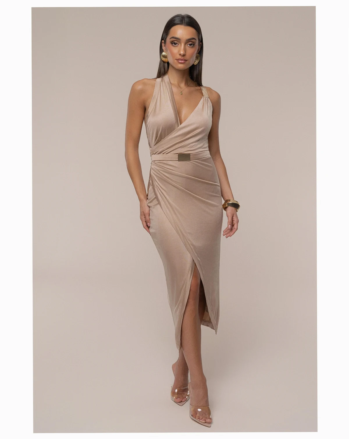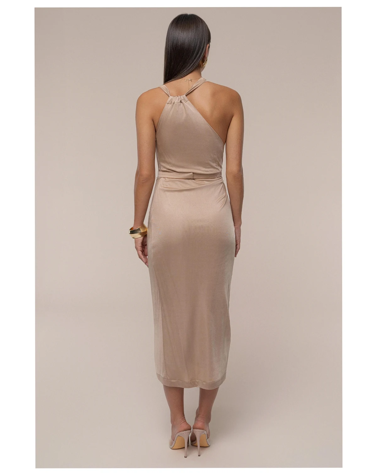 Our timeless original pieces reimagined for today in the JAIDE Collection.Introducing our Anniversary Belted Wrap Dress, the dress you ve always loved, now reinvented. This wrap style dress features an asymmetrical neckline with a cutout design, a center slit, and side zipper closure. A gold-tone accent at the shoulder adds a luxurious touch while the belt accentuates your figure. Stretchy.