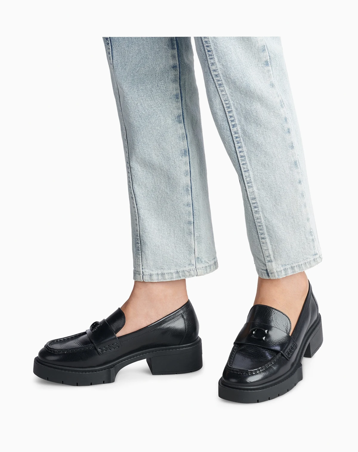Make a stylish initial impression with the shiny C trim that sets apart the COACH Leah platform lug sole loafers. The Leah loafers by COACH blend classic appeal with updated details and versatile slip-on styling.