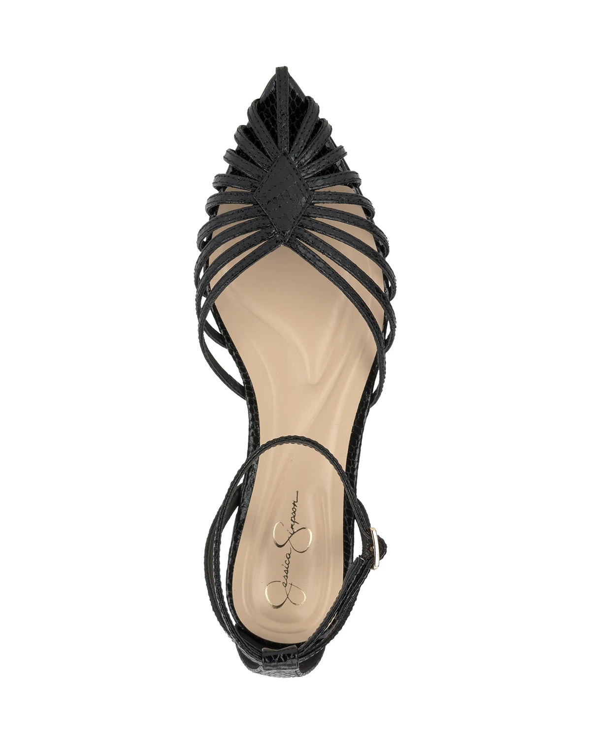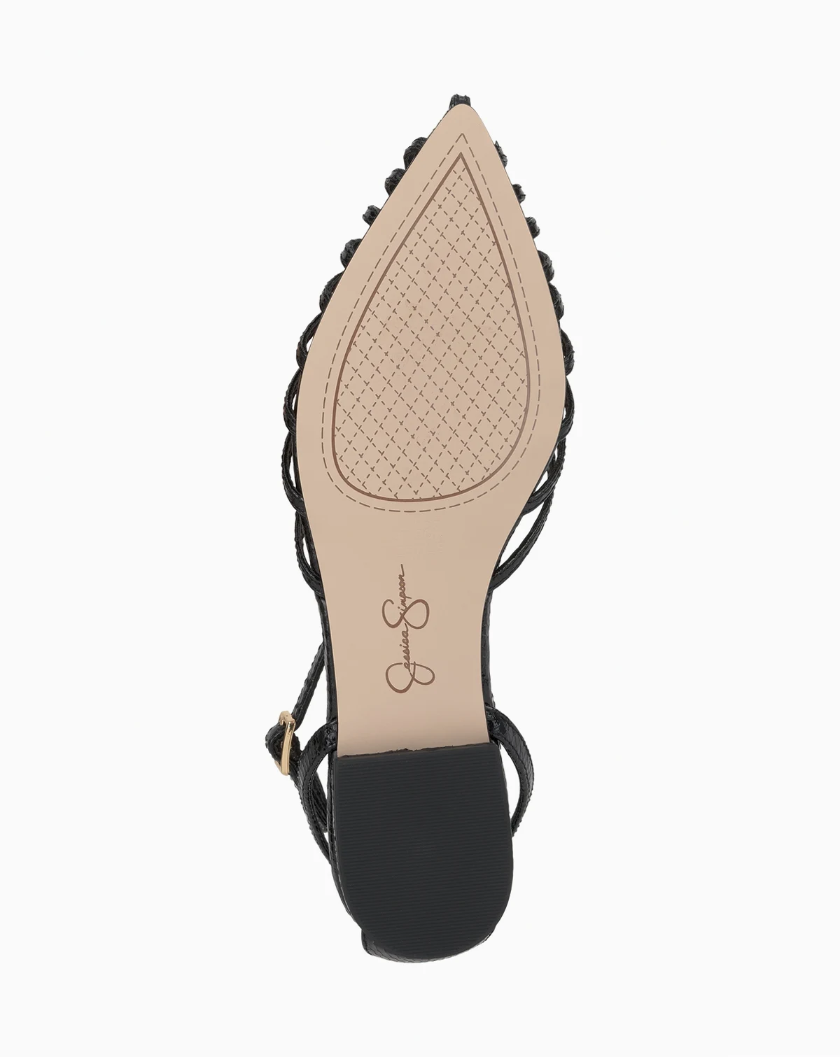 Walk with confidence in these Jessica Simpson Eulean Huarache flats, featuring a sleek pointed toe for modern style. The adjustable strap and single-sole construction provide a comfortable, customizable fit for all-day wear.