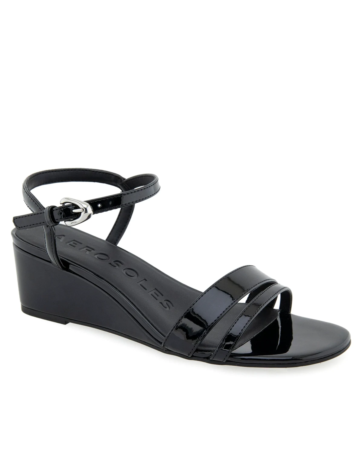 The Witt wedge sandal by Aerosoles offers a stylish and comfortable option for any occasion. Featuring a mid-wedge design with a buckle closure, diamond flex outsole for superior traction, and an Ortho lite foam insole for cushioning, this sandal provides support and elegance all day long.