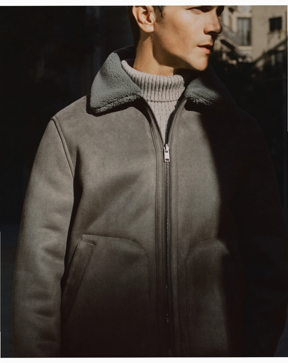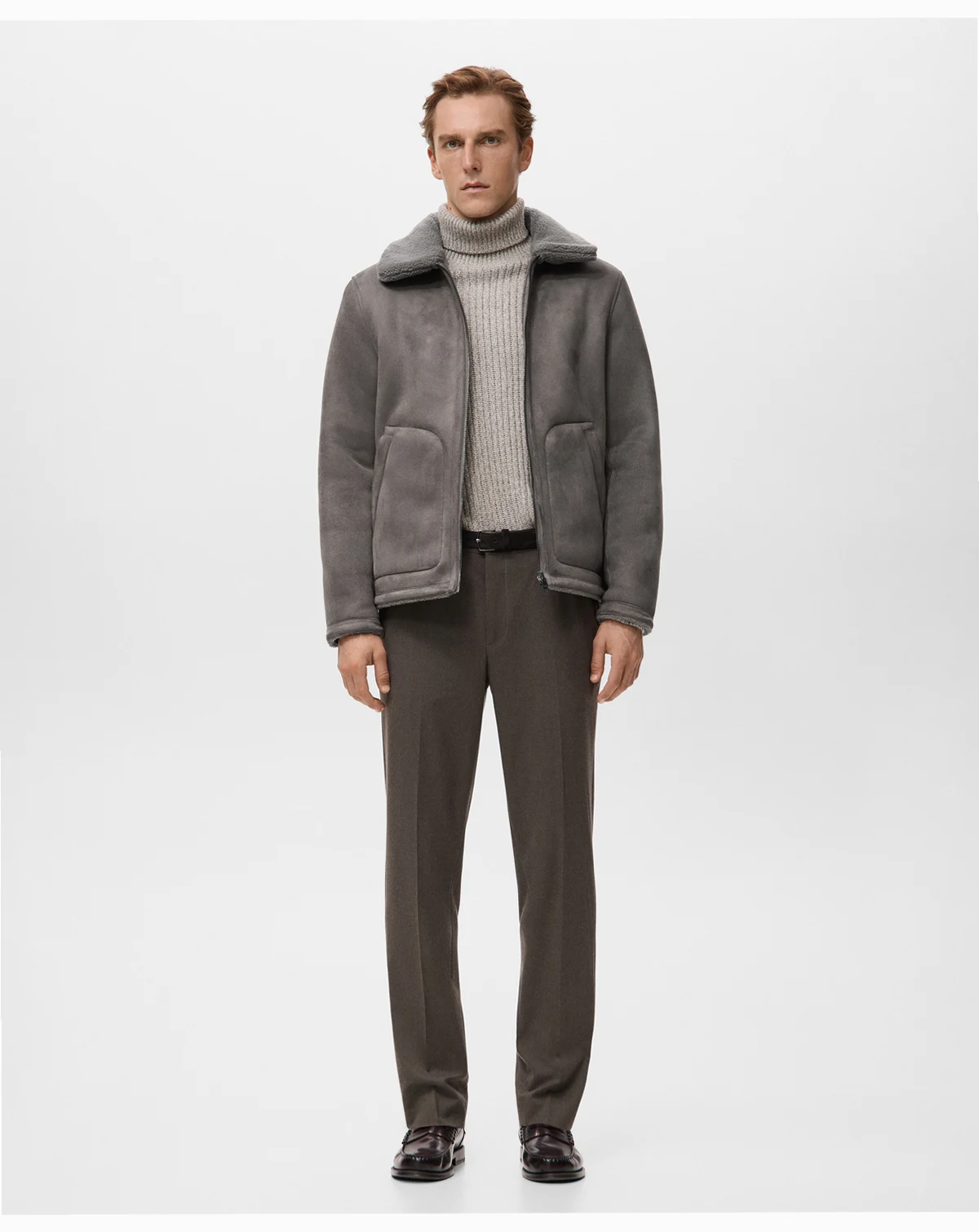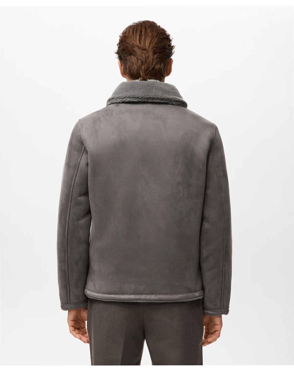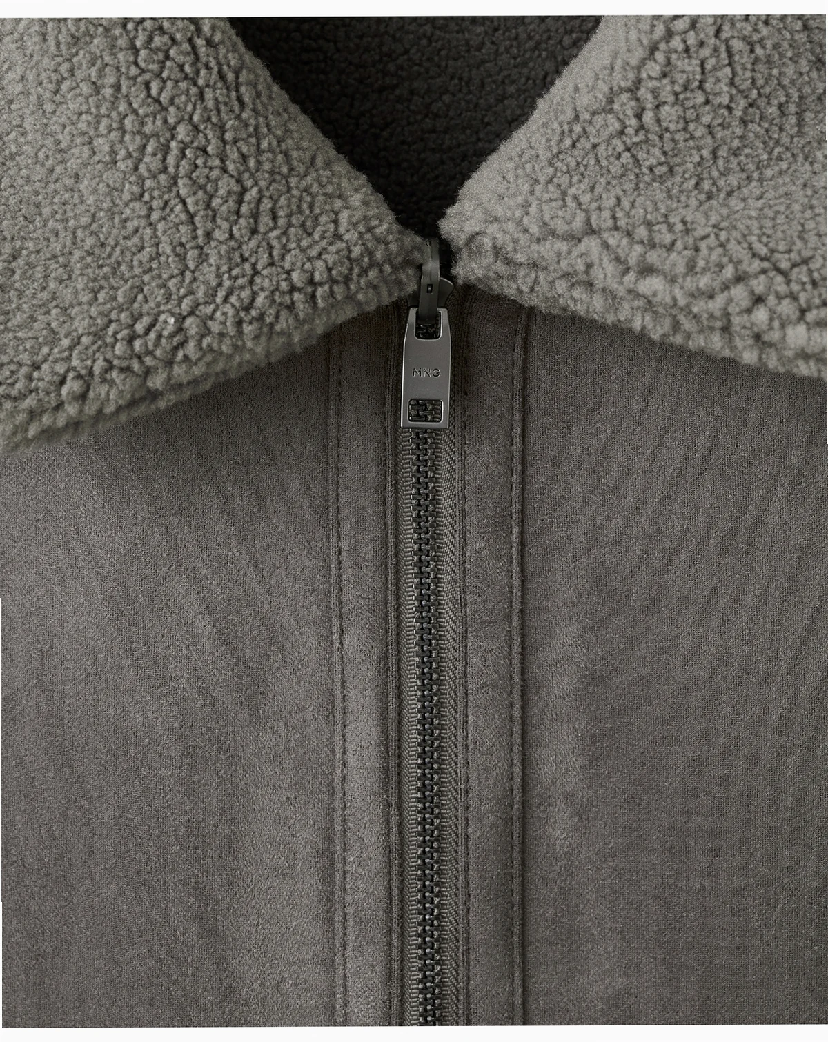 Build cold-weather looks with the Double Face Jacket with Fleece Lining from Mango. Made from polyester, this regular fit jacket features faux shearling interior, faux shearling collar, front zip closure, long sleeves, and two side pockets.