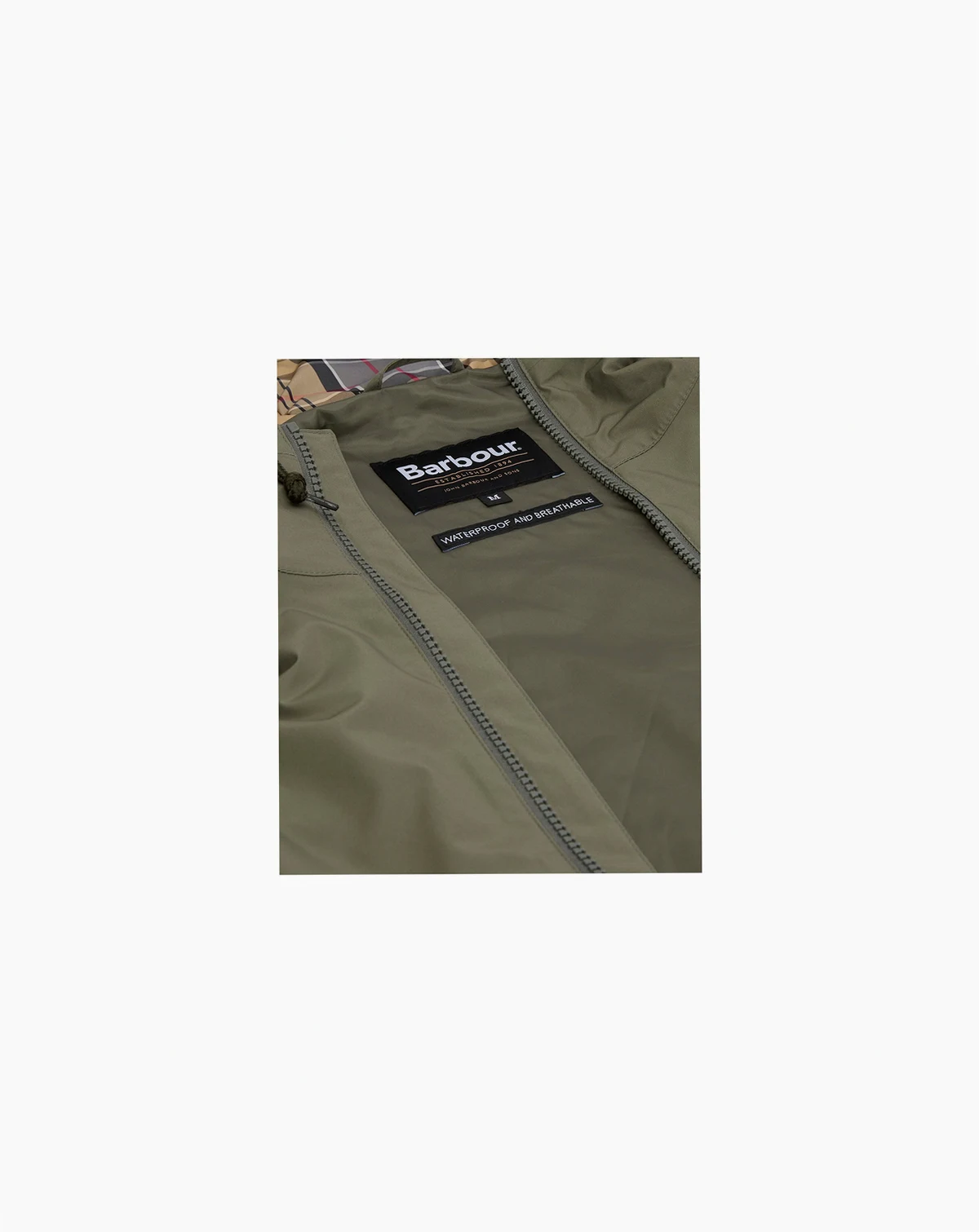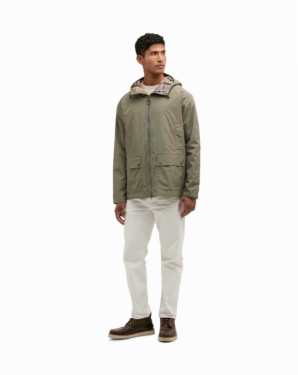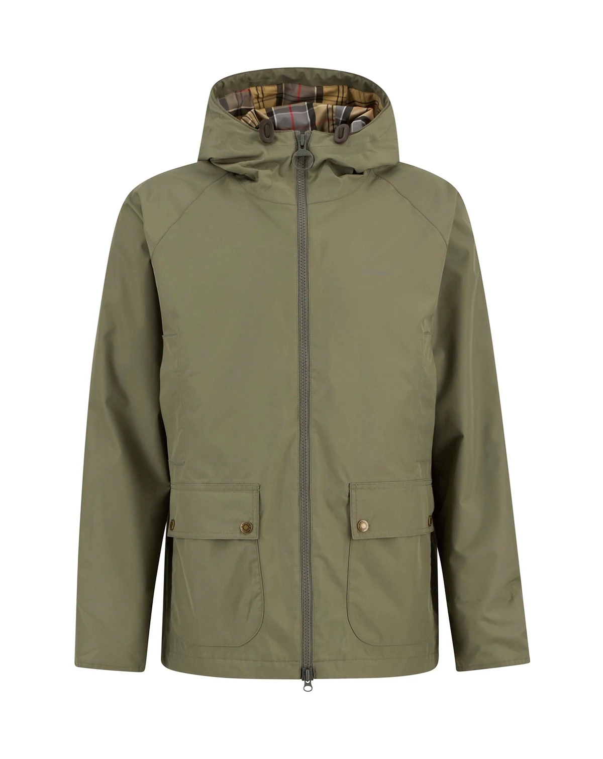 Stay stylish in any weather with this Barbour Hooded Domus jacket featuring a fixed hood and zip-front fastening. Hand-warmer pockets and lower bellows add functional storage to its waterproof design.