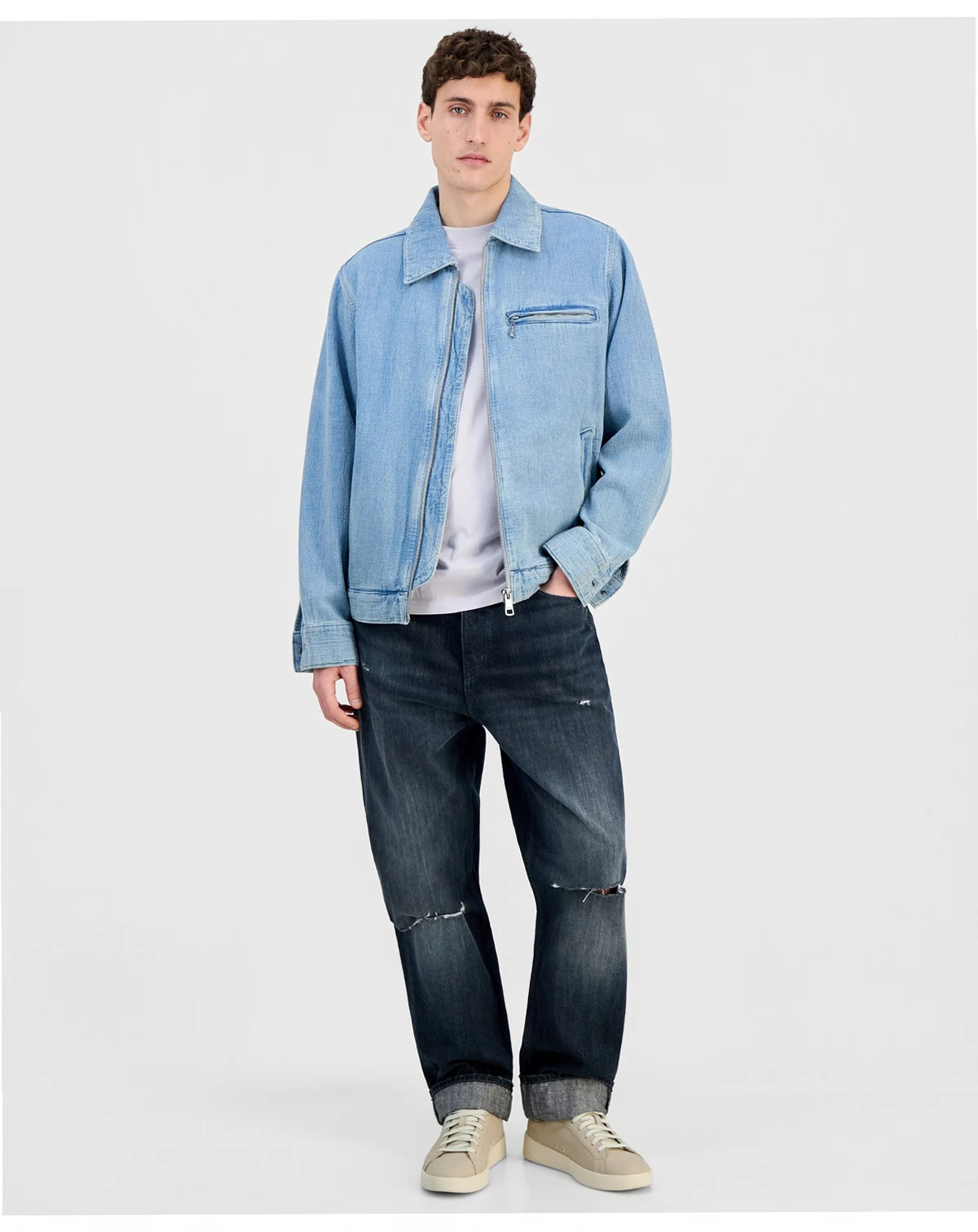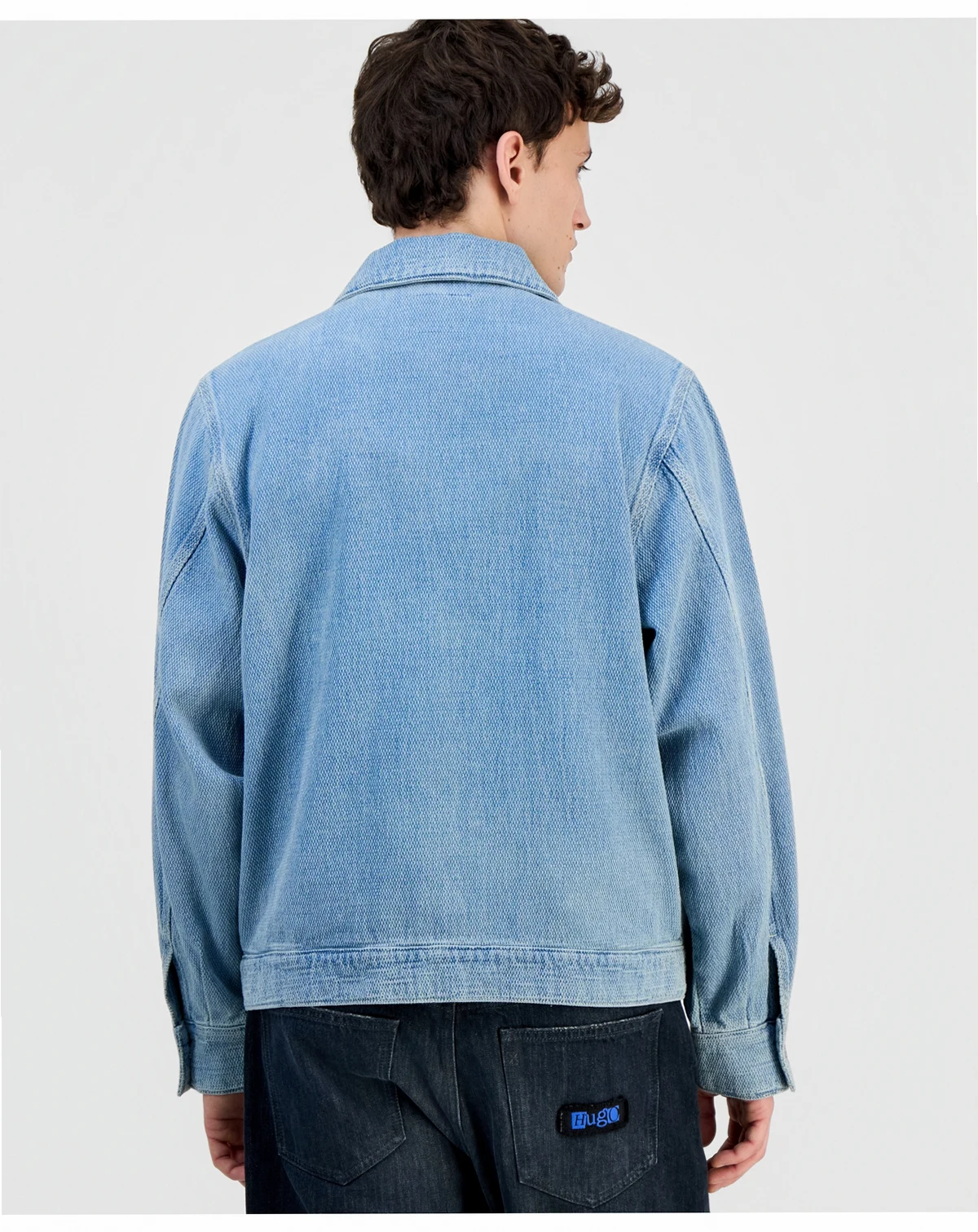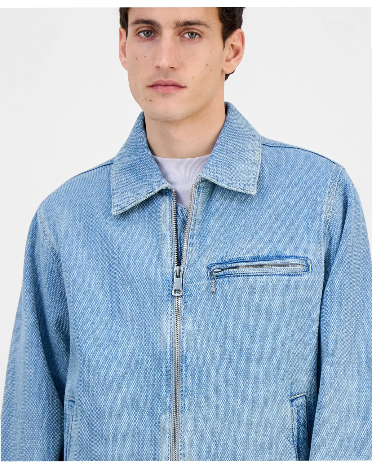 A fresh look in denim, this Hugo Boss jacket features waffled texture and a sleek zipper closure.